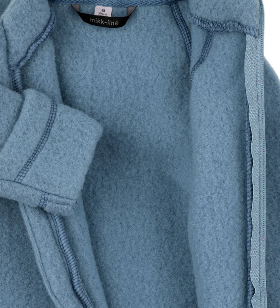 Mikk-Line køredragten har lange ærmer og lukkes med en praktisk lynlås, der går fra halsen og ned til det ene ben. Dragten har ombuk ved hænder og fødder, så den kan holde på varmen.