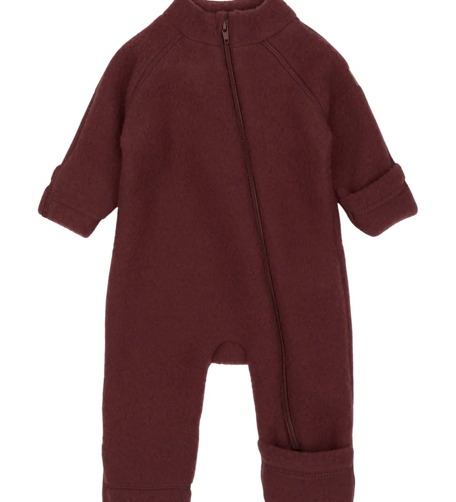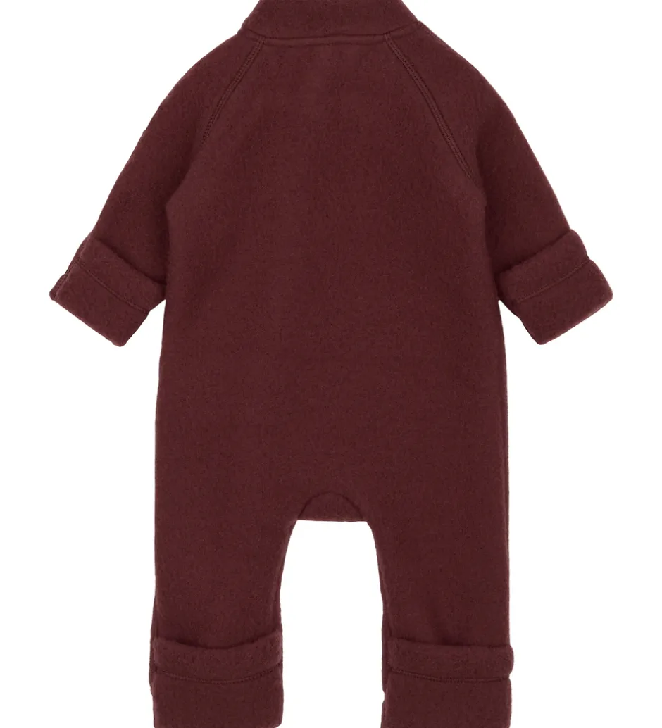 Flot Mikk-Line køredragt af filtet merinould i mørkerød.