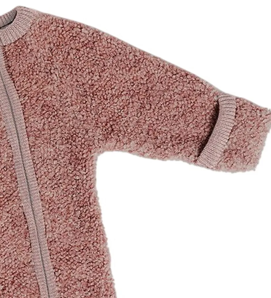 Smart Smallstuff køredragt i rosa bouclé. Køredragten åbnes fortil med to lynlåse fra hagen til knæene. Den har lange ærmer og lange ben med mulighed for ombuk til lukkede hænder og fødder. Køredragten har ribkanter ved alle åbninger. Den er fremstillet af merinould og polyamid for varm og holdbar kvalitet.
