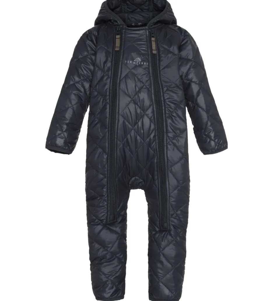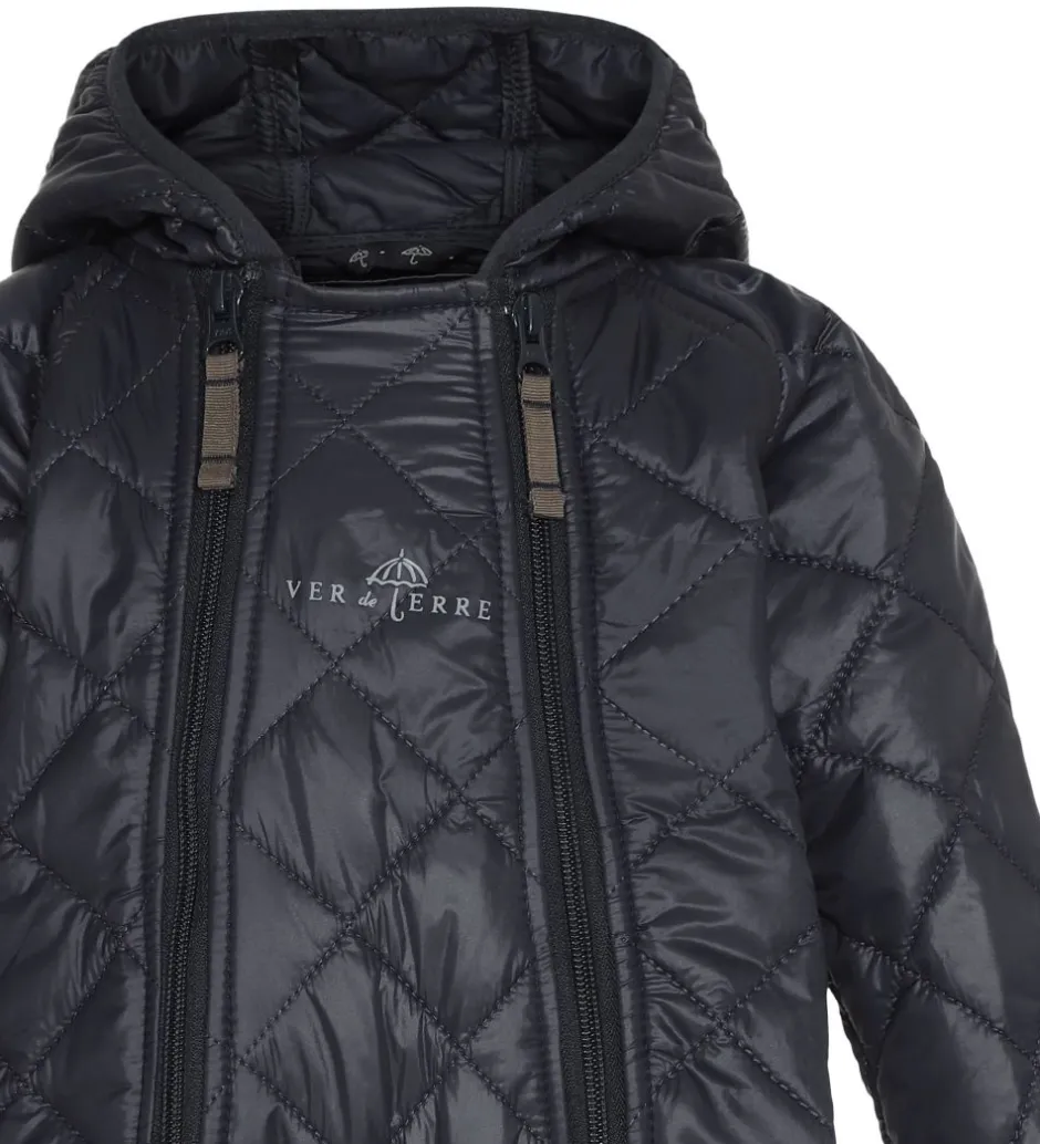Lækker Ver de Terre køredragt i ensfarvet navy i en glatvævet nylonkvalitet og med et flot, quiltet mønster.