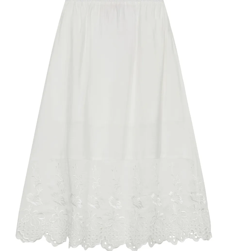 Flot Designers Remix nederdel i ensfarvet hvid med broderet blomstermønster på bunden.