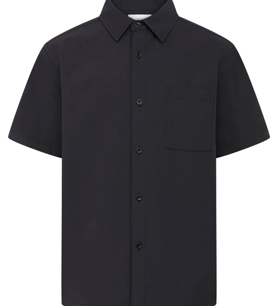 Smart Grunt skjorte i ensfarvet sort med en let crepéstruktur.