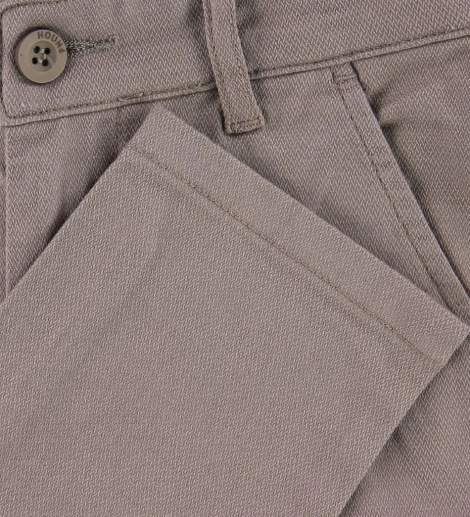 Hound bukserne er en chino-model. Der er en justerbar elastik italjen, og de åbnes med en knap og en lynlås. Fortil er der skrå lommer, og bagpå er der snydelommer.