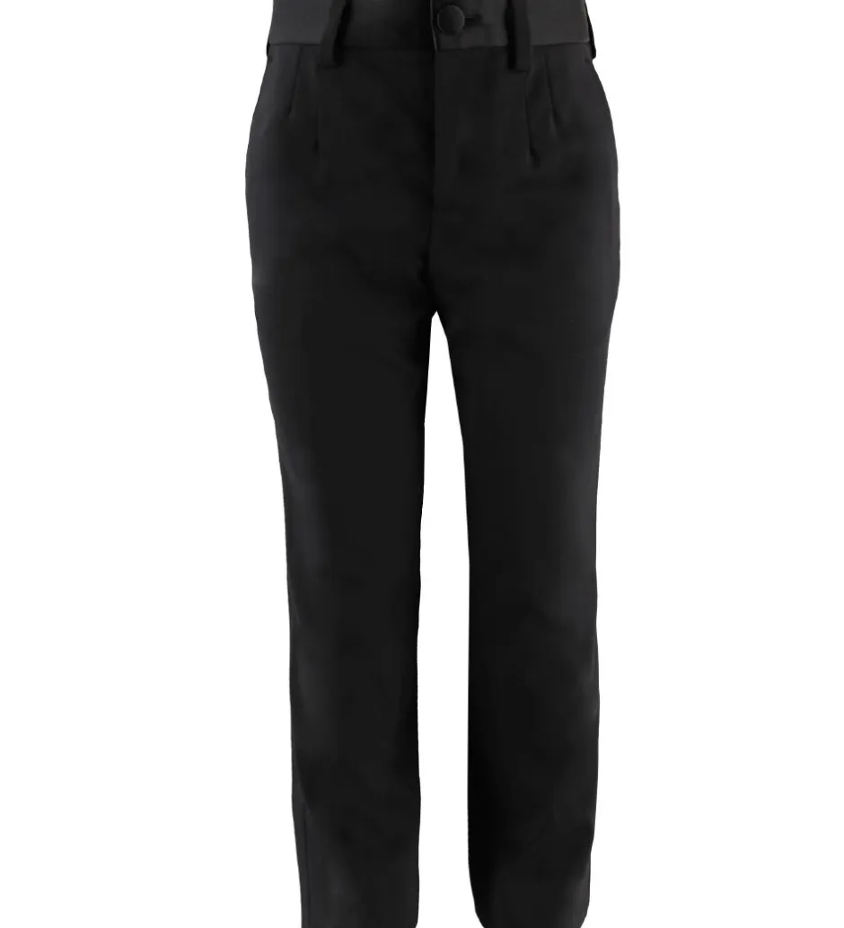 Dolce & Gabbana habitbukserne åbnes fortil med en stofbetrukket knap og en lynlås. I taljen er der bæltestropper, så bukserne kan styles med et smart bælte. Habitbukserne har skrå lommer fortil, og bagpå er der to snydelommer.