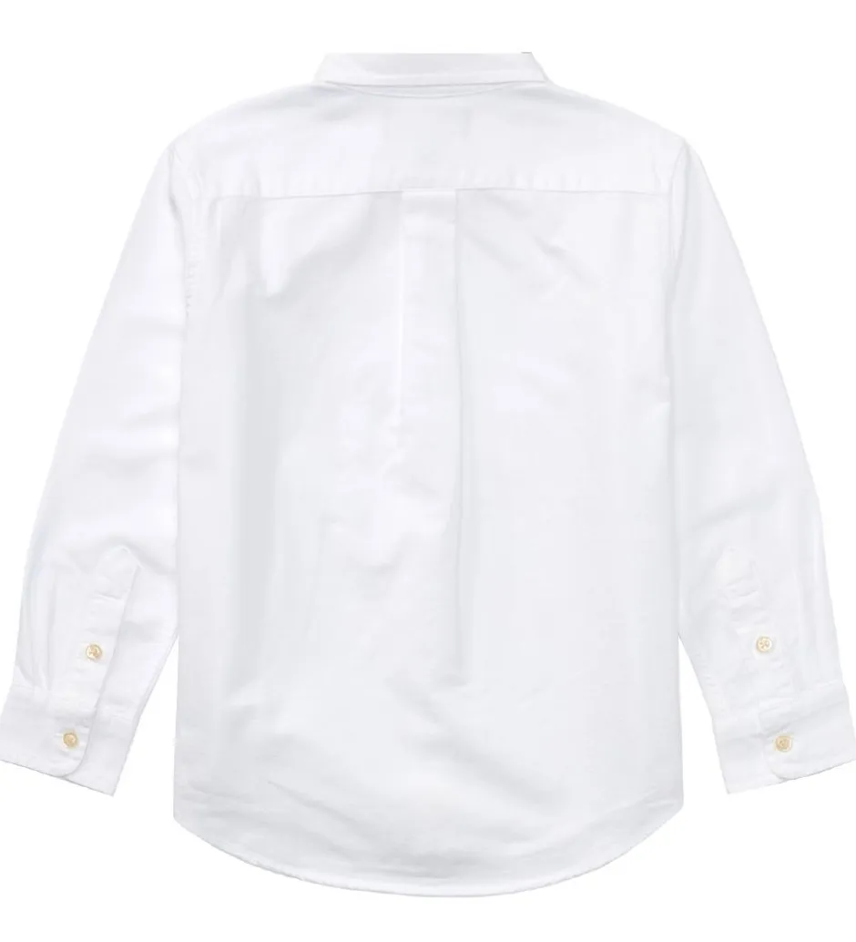 Polo Ralph Lauren skjorten har lange ærmer med brede kanter, der lukkes med to knapper. I halsåbningen er der en klassisk krave, hvor flipperne holdes på plads af en lille knap. Skjorten åbnes fortil med hvide knapper.