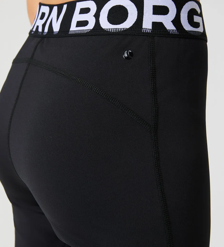 Smagfulde Björn Borg leggings i en klassisk sort farve med en tydelig elastisk talje, hvor Björn Borgs navn er indarbejdet. Disse leggings har en tætsiddende pasform, der understreger benenes naturlige linjer.