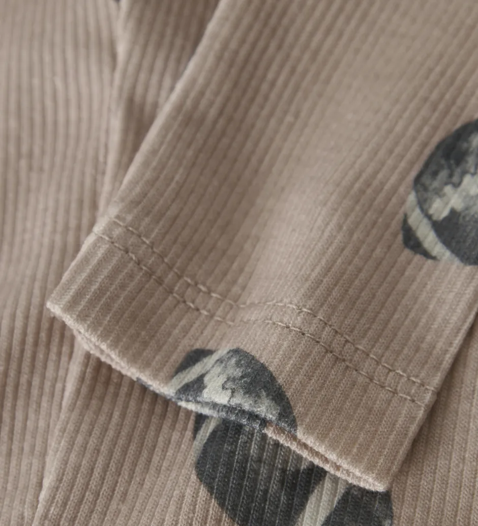 Stilfulde Name It leggings med en varm beige farve med print af amerikanske fodbolde. Leggingsene har ribstruktur og en god elastik i taljen.