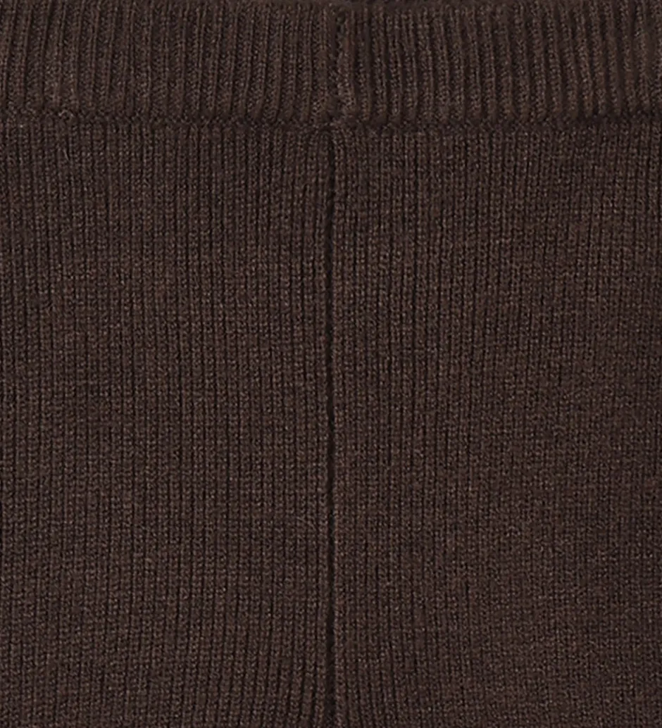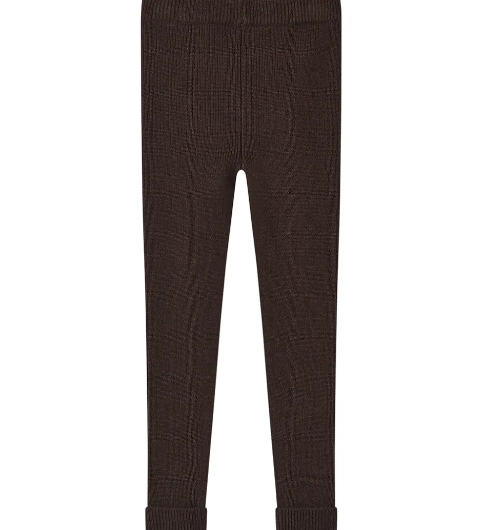 Skønne Fliink leggings i en dyb, brun farve med en strikket ribstruktur. Fliink leggingsene har en elastisk talje og opsmøgede benkanter, som giver et enkelt look.