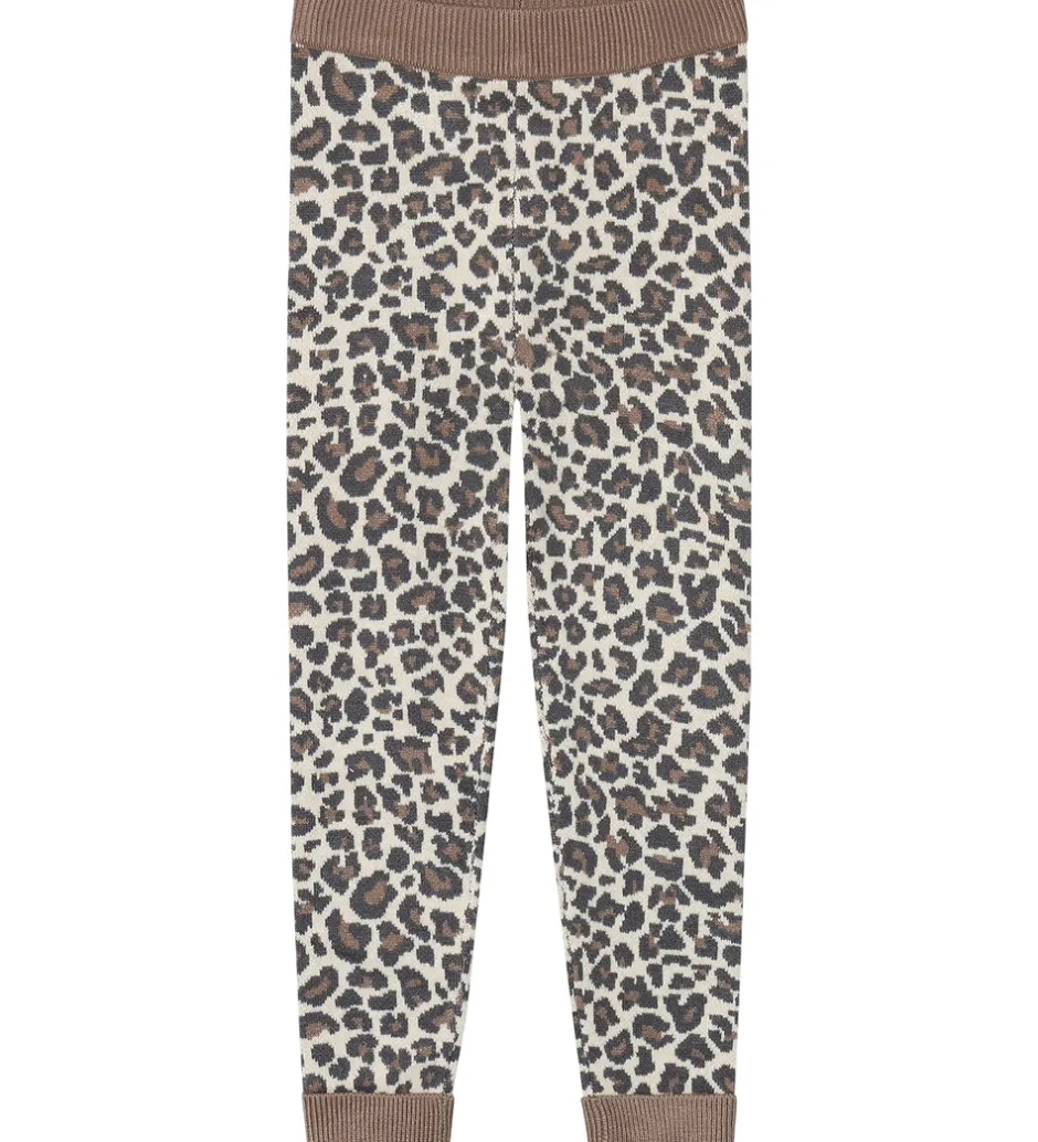 Stilfulde Fliink leggings strikket med et leopardmønster i brune og beige nuancer. Fliink leggingsene har en elastisk talje og ribkanter ved anklerne for en god pasform.