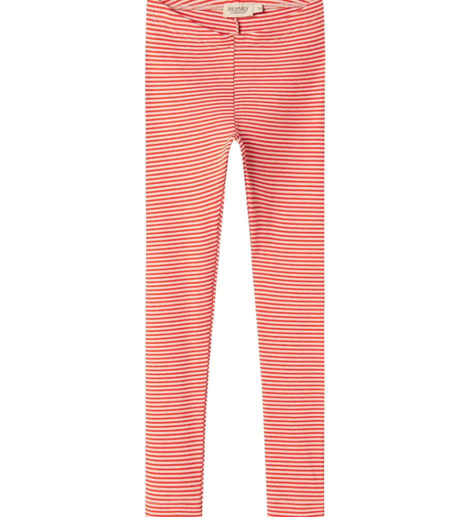 Flotte MarMar leggings med et stribet mønster i rød og hvid. MarMar leggingsene har elastik i taljen for en god pasform.