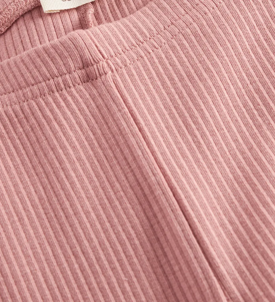 Smukke MarMar leggings i en støvet rosa farve med en elegant ribstruktur. MarMar leggingsene har en elastisk talje, hvilket sikrer en behagelig pasform.