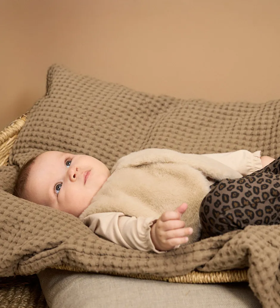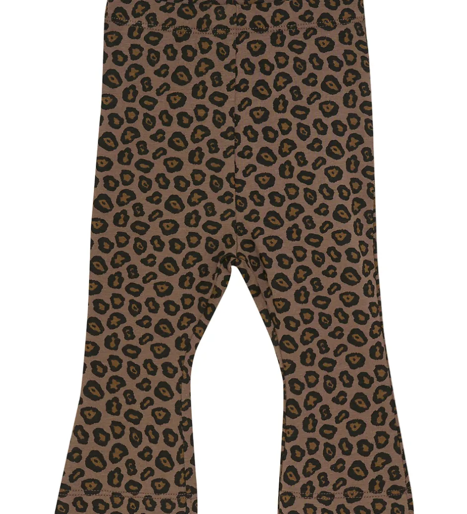 Skønne leggings fra Minymo i brun med leopardprint i brun og sort. Minymo leggingsene har en elastisk talje, der sikrer en god pasform. Leggingsene har en tætsiddende pasform ved lårene og bliver brede ved anklerne.