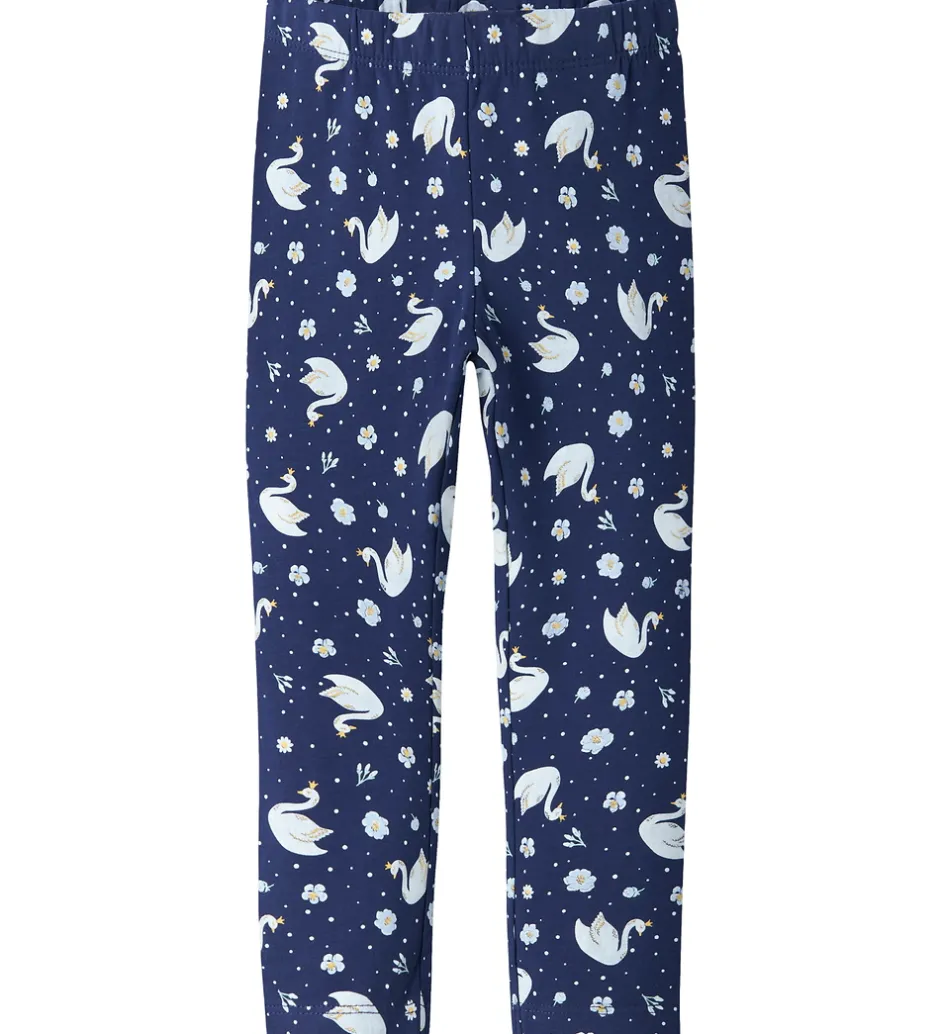 Elegante Name It leggings i mørkeblå med et smukt print af svaner og blomster. Name It leggingsene har en elastisk talje, der giver en god pasform.