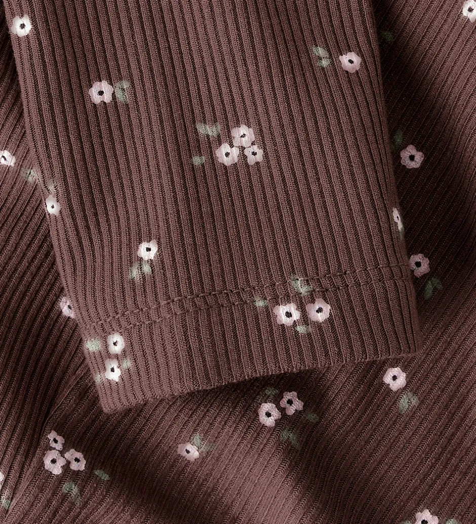 Elegante Name It leggings i en mørkelilla nuance med et delikat mønster af små blomster. Name It leggingsene har en elastisk talje og en lækker ribstruktur, der sikrer en behagelig pasform.