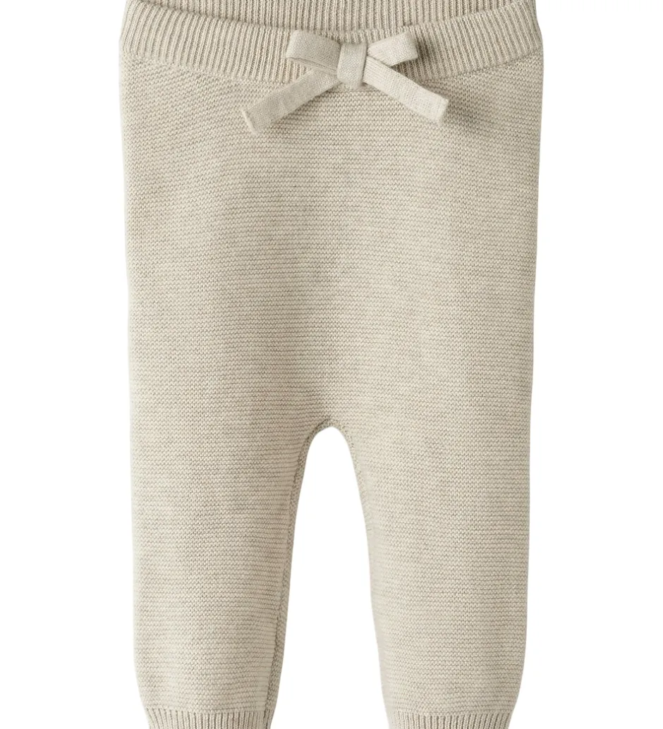 Fine Name It leggings i en lys beige farve med strikket struktur. Name It leggingsene har en elastisk ribkant i taljen og er udsmykket med en sød sløjfe foran.