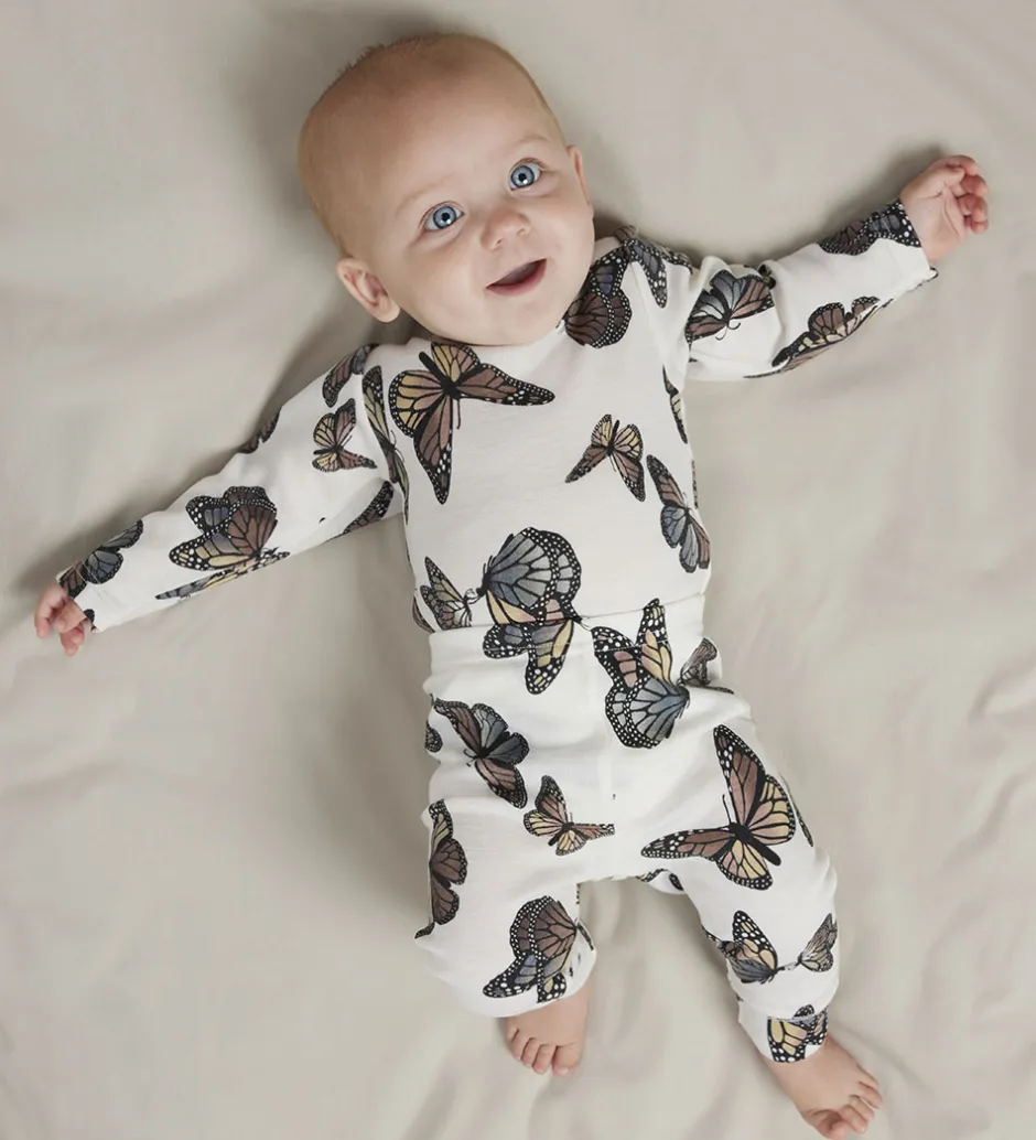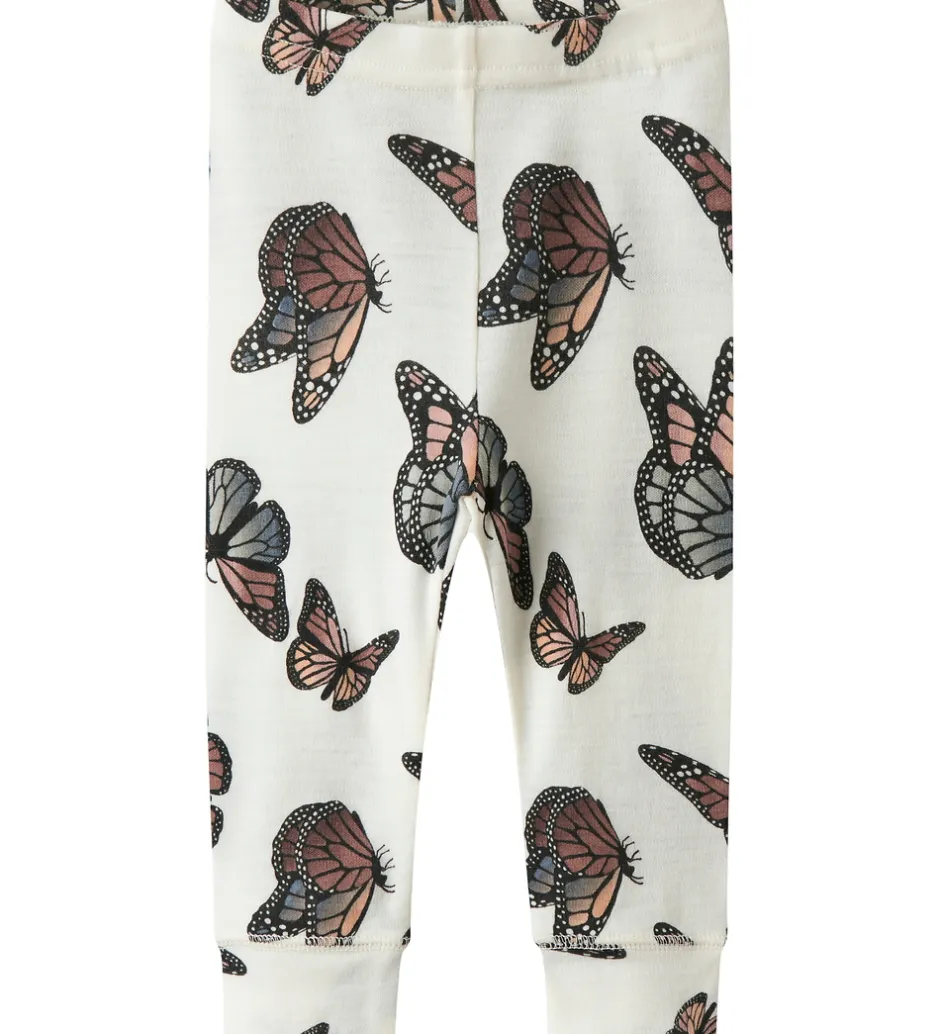 Charmerende Name It leggings i hvid med et farverigt sommerfugleprint. Name It leggingsene er behagelige og har en god pasform, perfekt til enhver garderobe.