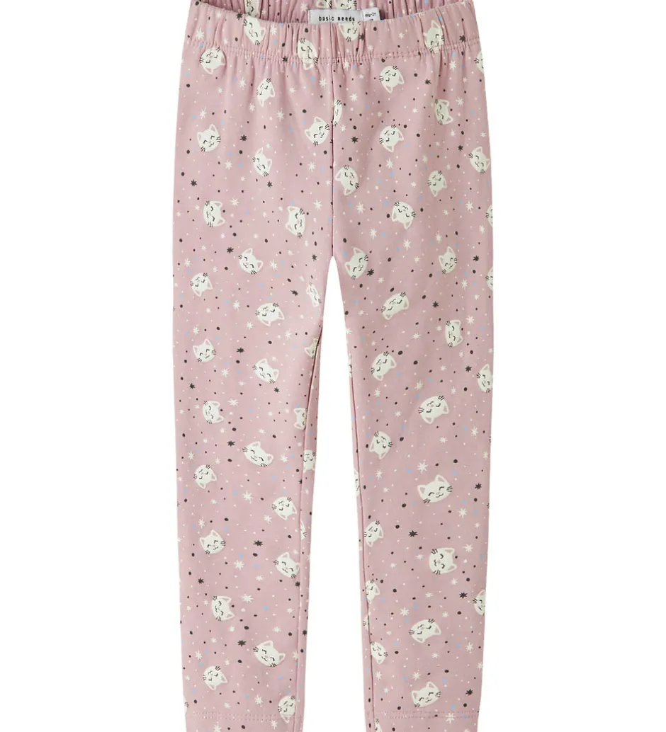 Charmerende Name It leggings i en støvet, rosa nuance med et mønster af søde kattehoveder og stjerner. Name It leggings er designet med en elastisk talje for en god pasform.