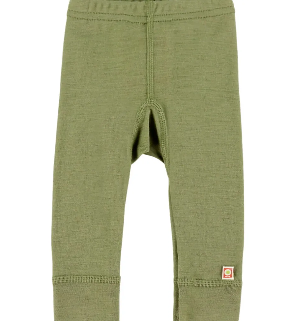 Stilfulde Katvig leggings i en skøn grøn nuance. Katvig leggingsene har en elastisk talje og brede kanter ved anklerne. De er fremstillet af økologisk merinould.