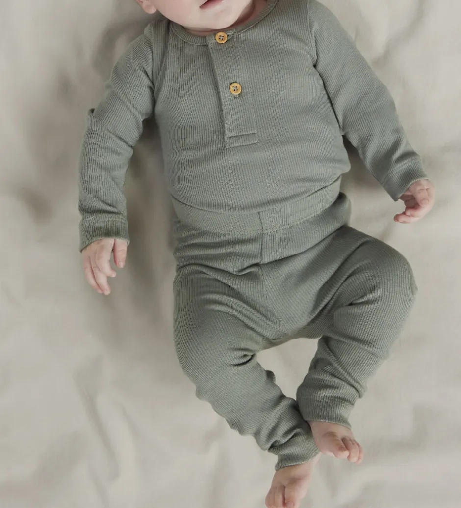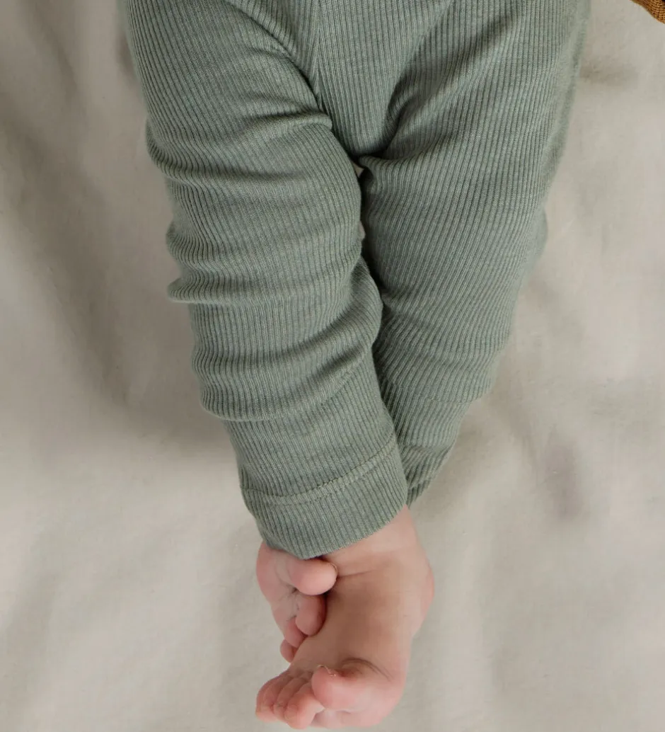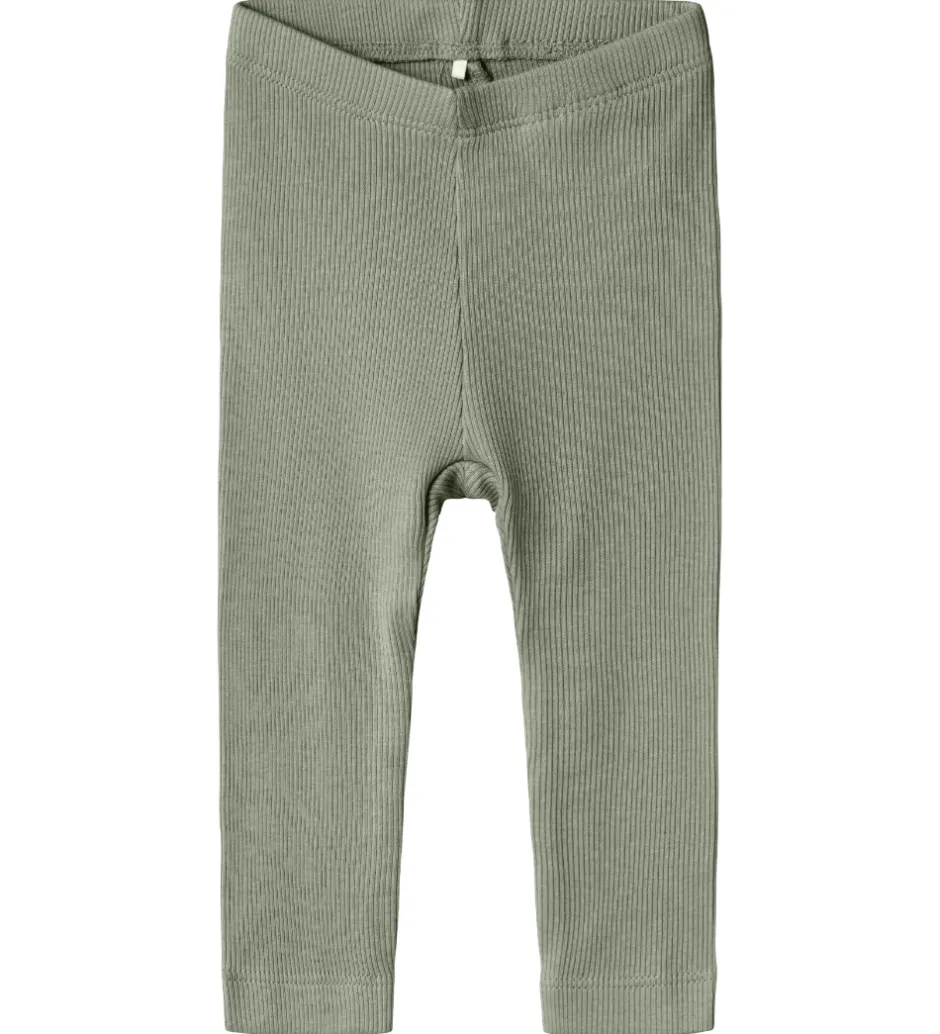 Stilfulde Name It leggings i en støvet grøn farve med ribstruktur. Name It leggingsene har en elastisk talje, der sikrer en behagelig pasform.