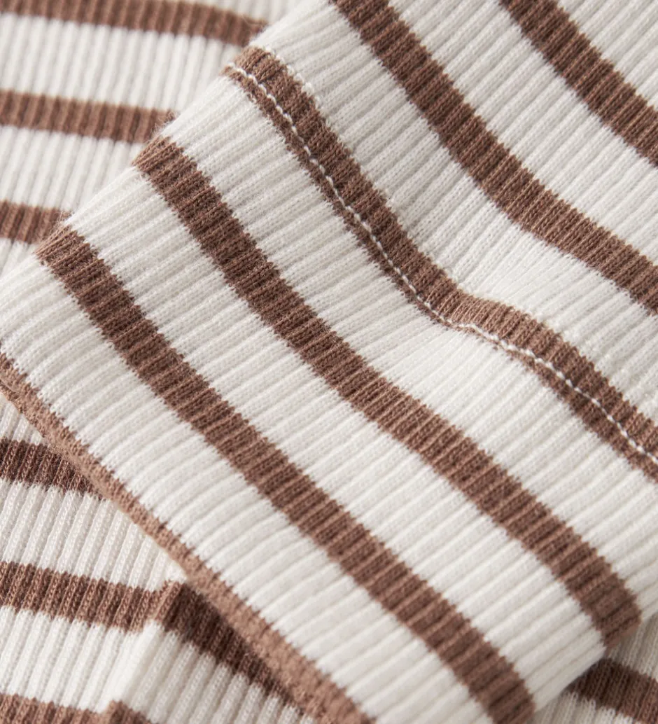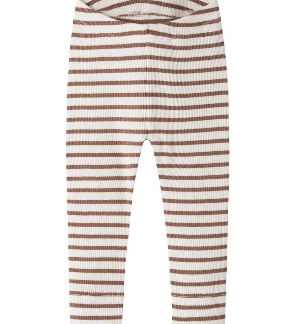 Stilfulde Name It leggings i hvid med brune striber og ribstruktur. Name It leggingsene har en elastisk talje, der sikrer en god pasform.
