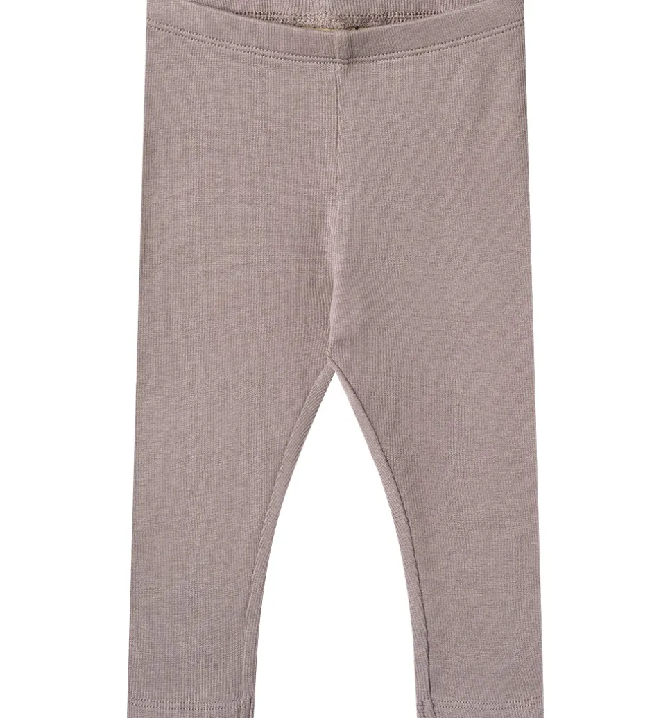 Fine Wheat leggings i en afdæmpet lilla nuance og med en ribbet struktur. Wheat leggingsene har en elastisk talje, der sikrer en god pasform.