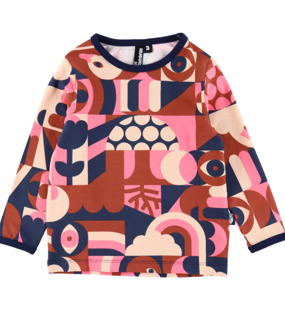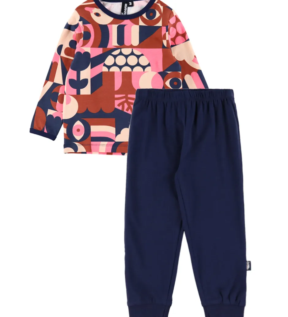Fint Danefæ nattøj bestående af en langærmet natbluse med farverigt mønster samt et par navyblå natbukser. Natblusen har en rund halsudskæring og lange ærmer. Natbukserne har en god elastik i taljen og brede ribkanter ved anklerne.