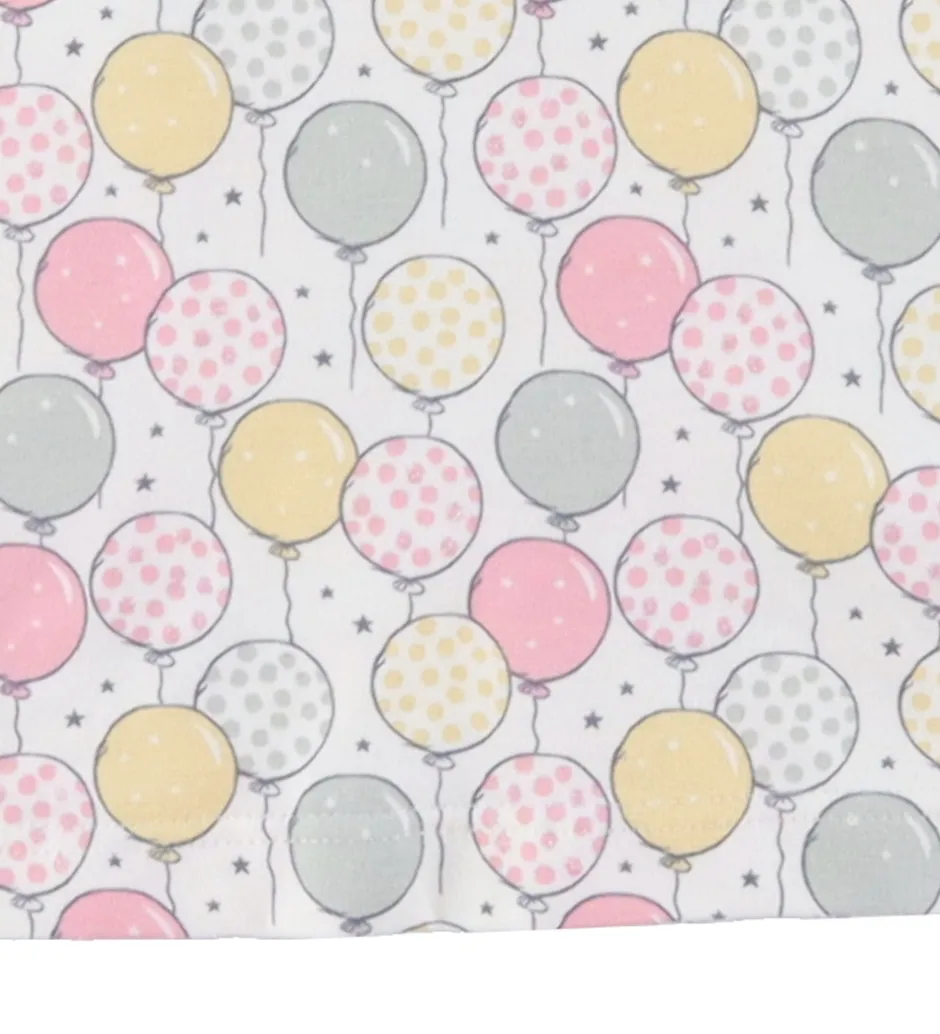 Skønt Joha nattøj 2-delt bestående af en nattrøje og et par natbukser. Nattrøjen er i hvid med et farverigt ballonprint i rosa, gul og grøn med få rosa glimmer prikker, mens bukserne har en enkel design i ensfarvet rosa. Joha kombinerer komfort og stil i dette nattøj.