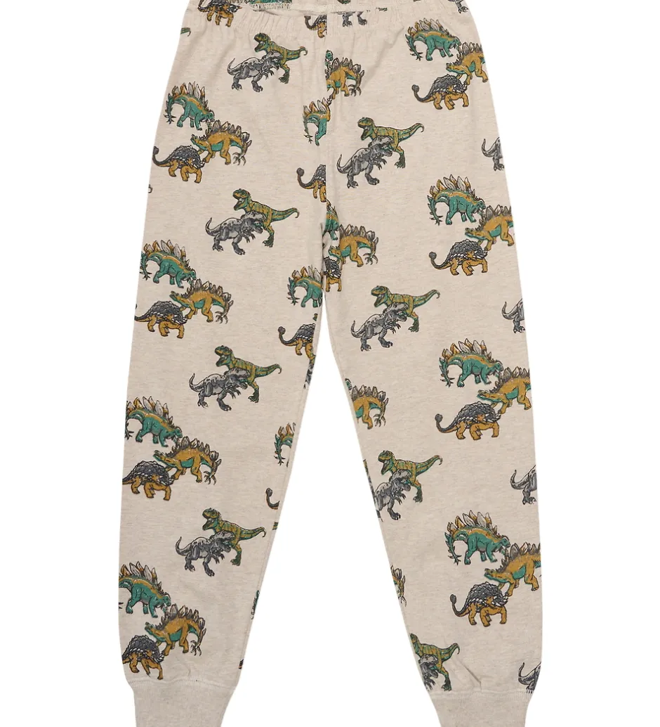 Dejligt 2-delt Minymo nattøj i en flot beige nuance. Sættet har et smart alloverprint af farverige dinosaurer på både bluse og bukser, der giver et sjovt og skønt look.