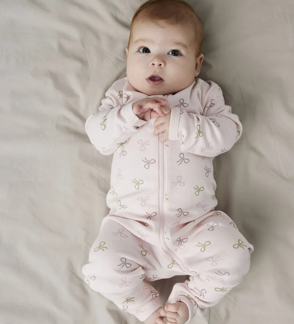 Søde Name It natdragter solgt i en 2-pak i en blød rosa og lilla farve. Den ene natdragt har et alloverprint af små sløjfer, og den anden har en enkel sløjfe i venstre hjørne. Natdragterne har lange ærmer og praktisk lynlåse, der gør påklædningen nem og hurtig.