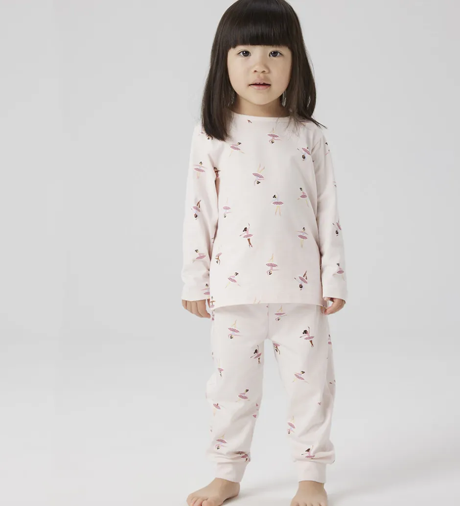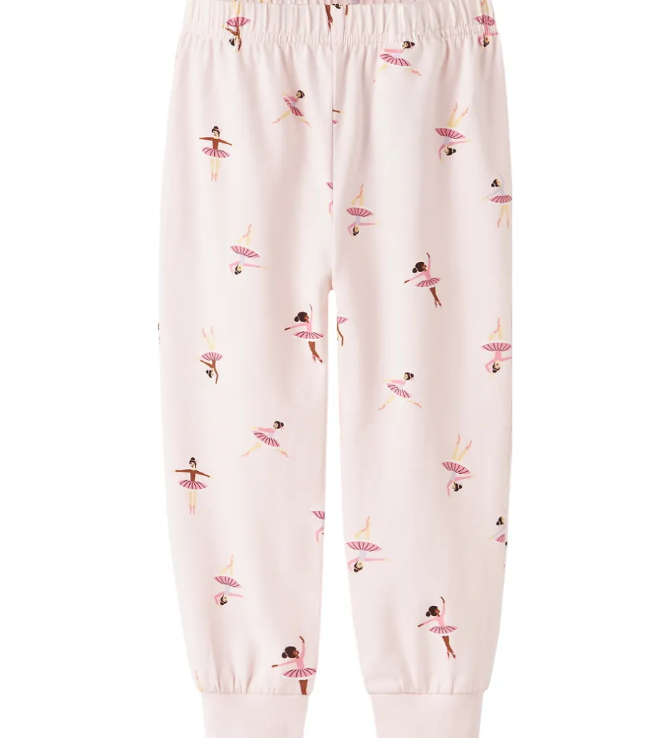 Charmerende Name It nattøj bestående af en natbluse og et par natbukser i en sart, lyserød nuance. Nattøjet har et fint mønster af små ballerinaer, som skaber et sødt og sjovt udtryk. Name It nattøjet er både behageligt og stilfuldt.