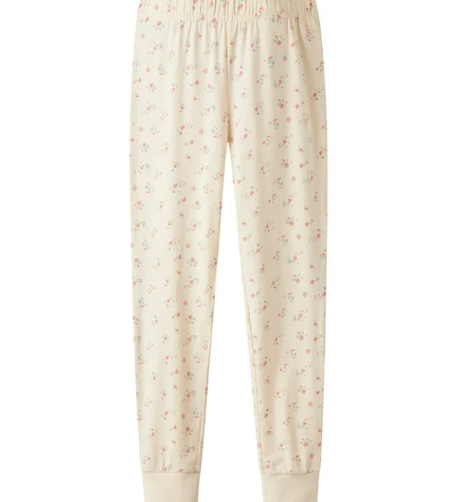 Dejligt Name It nattøj bestående af en natbluse og et par natbukser i beige med et charmerende blomsterprint. Name It nattøjet kombinerer komfort og et subtilt design, perfekt til en afslappende nat.