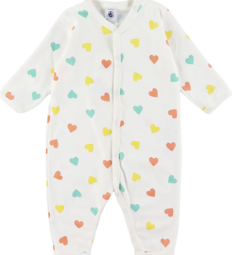 Flot Petit Bateau natdragt i hvid med et alloverprint med hjerter i orange, gul og grøn.