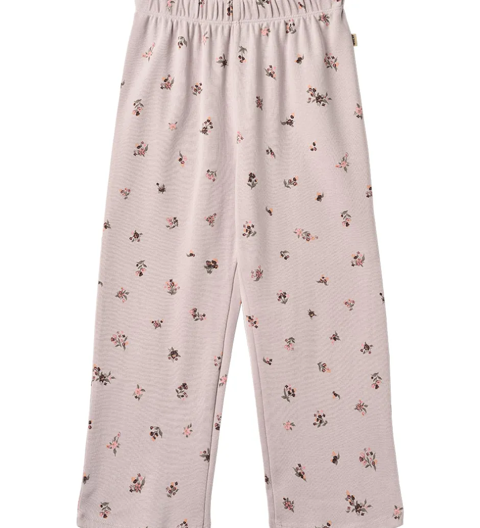 Behageligt Wheat nattøj, som inkluderer en natbluse og et par natbukser, der begge er i lilla og med et fint alloverblomsterprint i rosa og grøn, der giver et stilfuldt look.