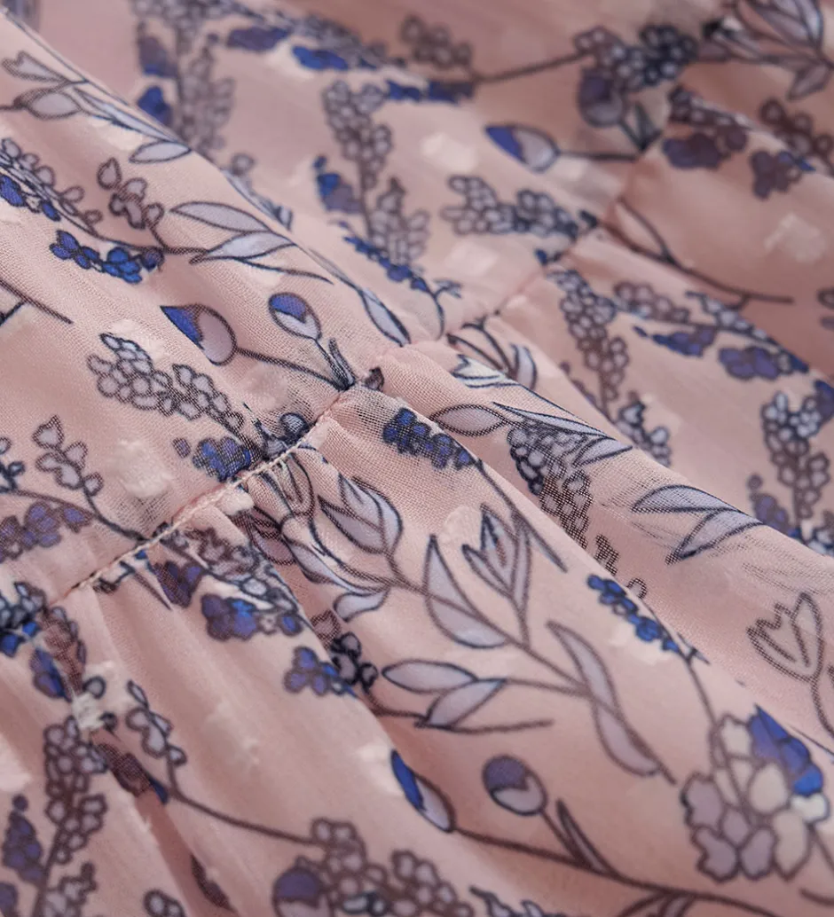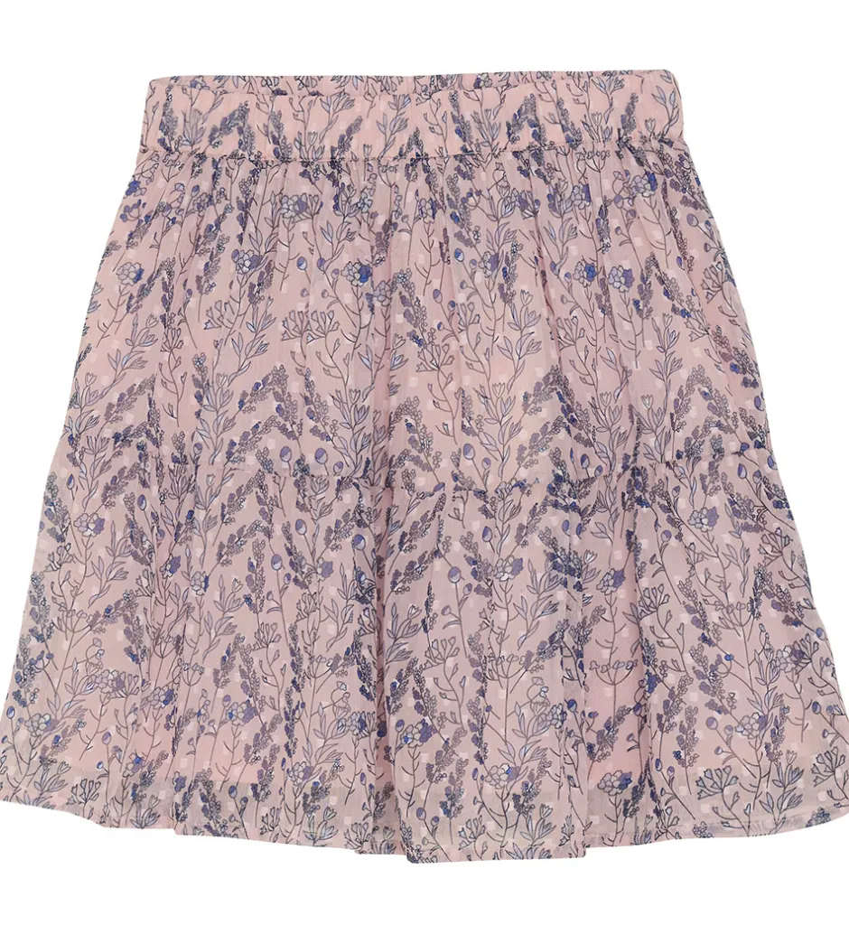 Sød Creamie nederdel med et fint alloverblomsterprint i lilla og rosa nuancer, der tilføjer et charmerende touch.
