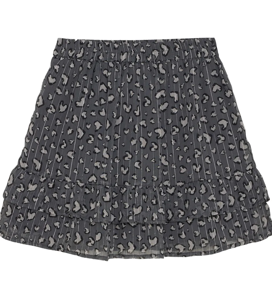 Stilfuld Creamie nederdel med et flot leopardprint i nuancer af grå. Creamie nederdelen har en behagelig elastisk kant i livet, der sikrer en god pasform. Nederdelen er udstyret med fine plisseringer og nederst en dobbelt lag detalje, der tilføjer ekstra elegance. Nederdelen er foret med glatvævet bomuld.