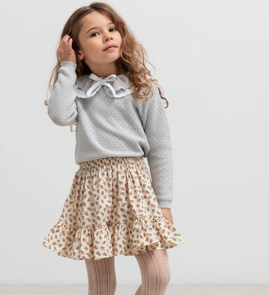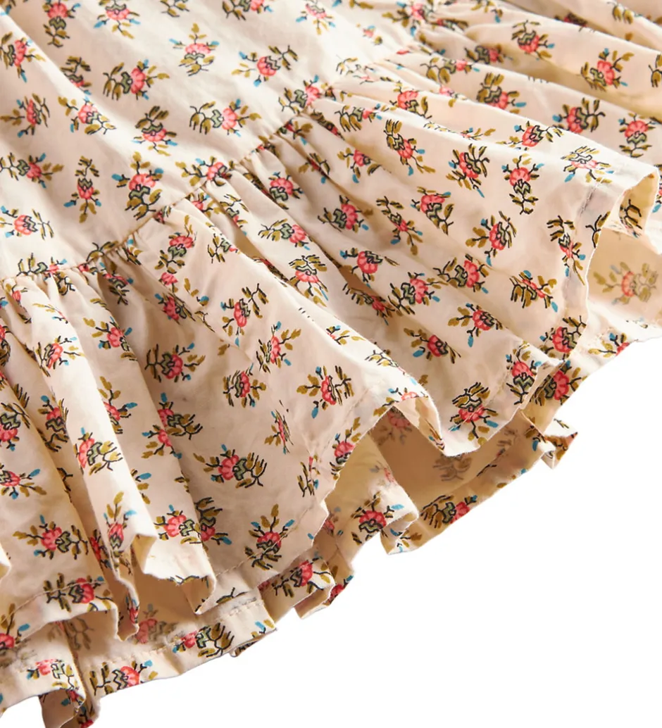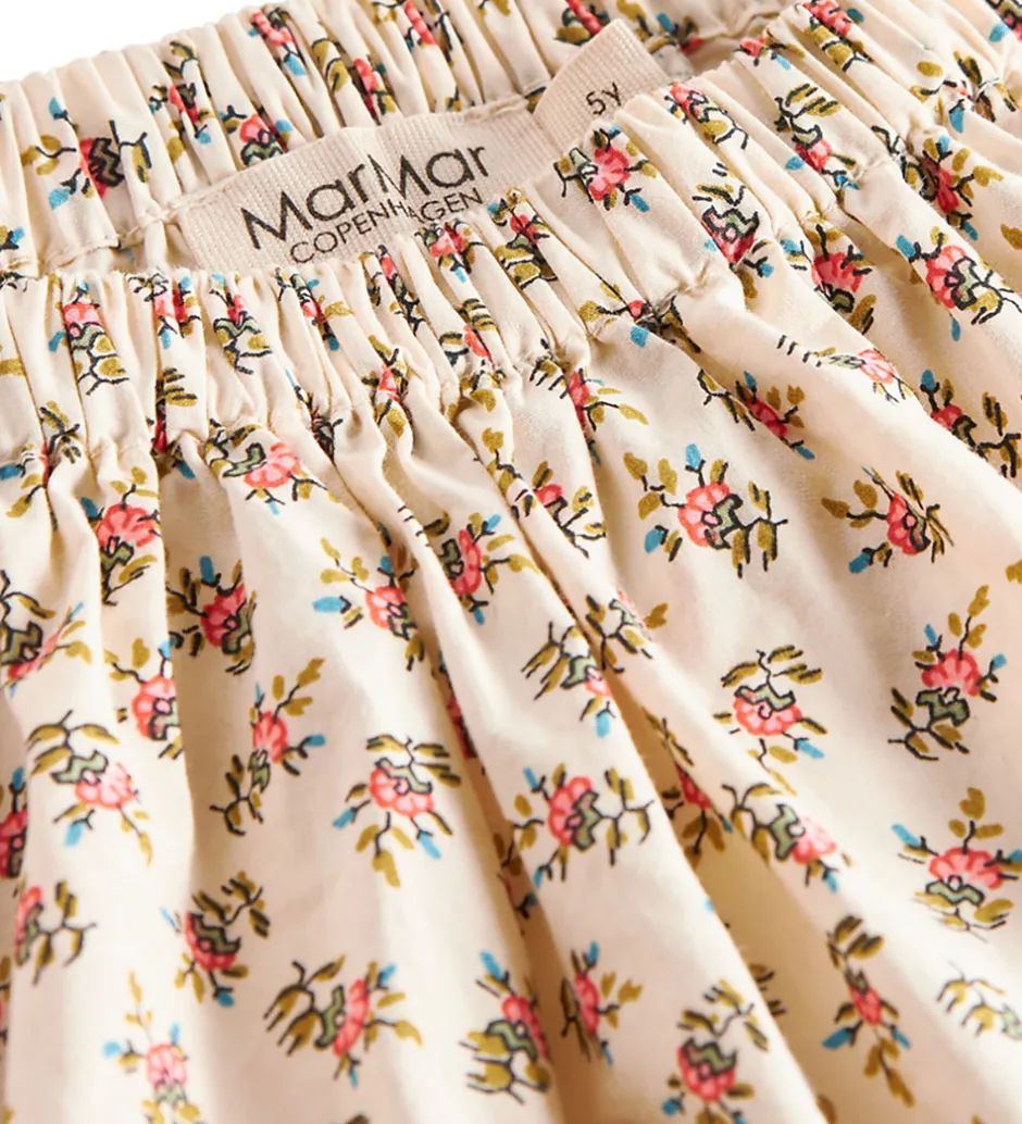 Elegant MarMar nederdel i beige med et smukt blomsterprint i rosa, grønne og blå nuancer.