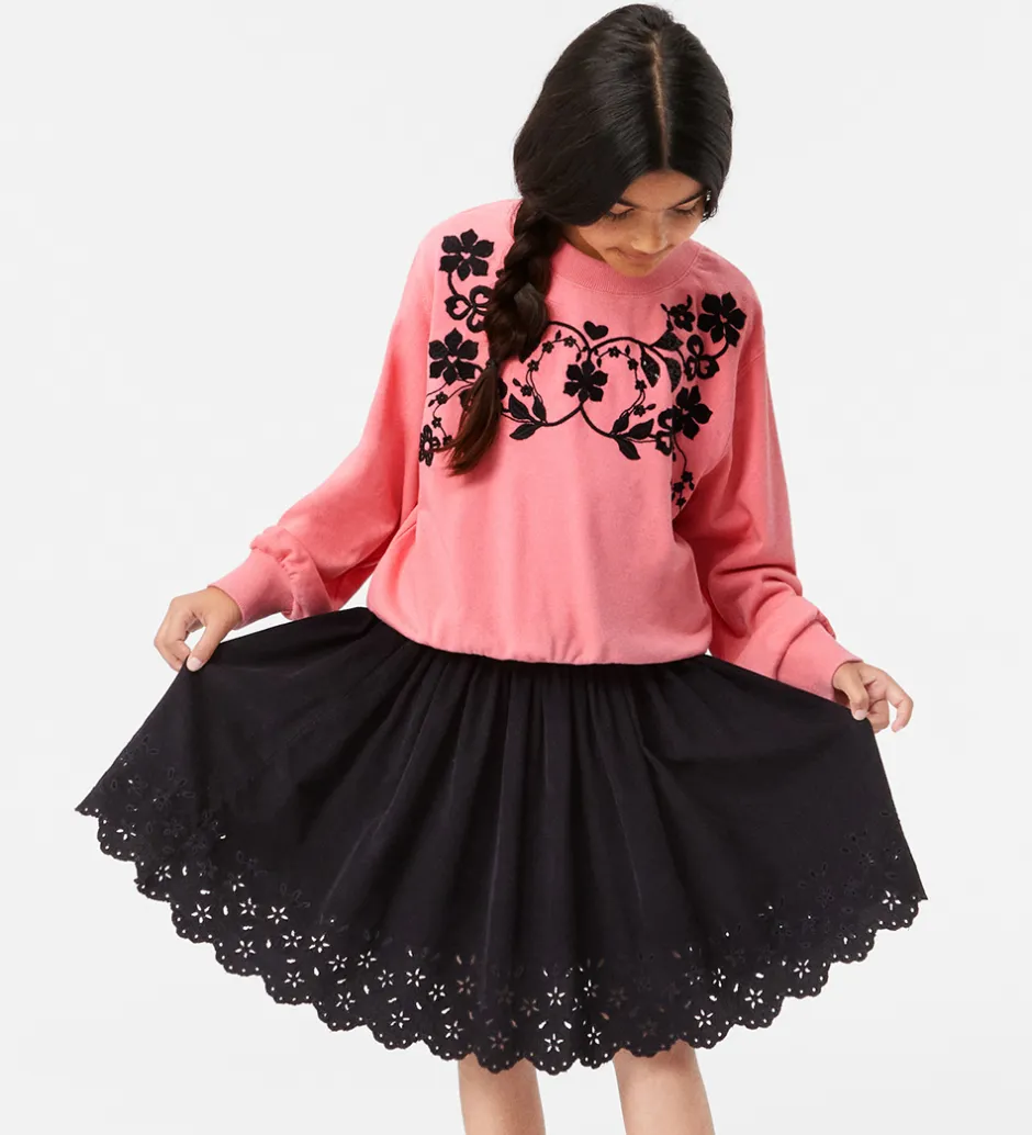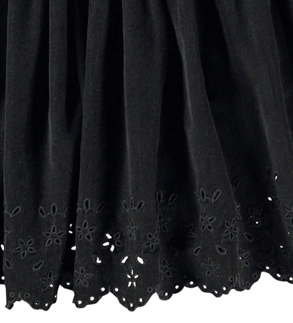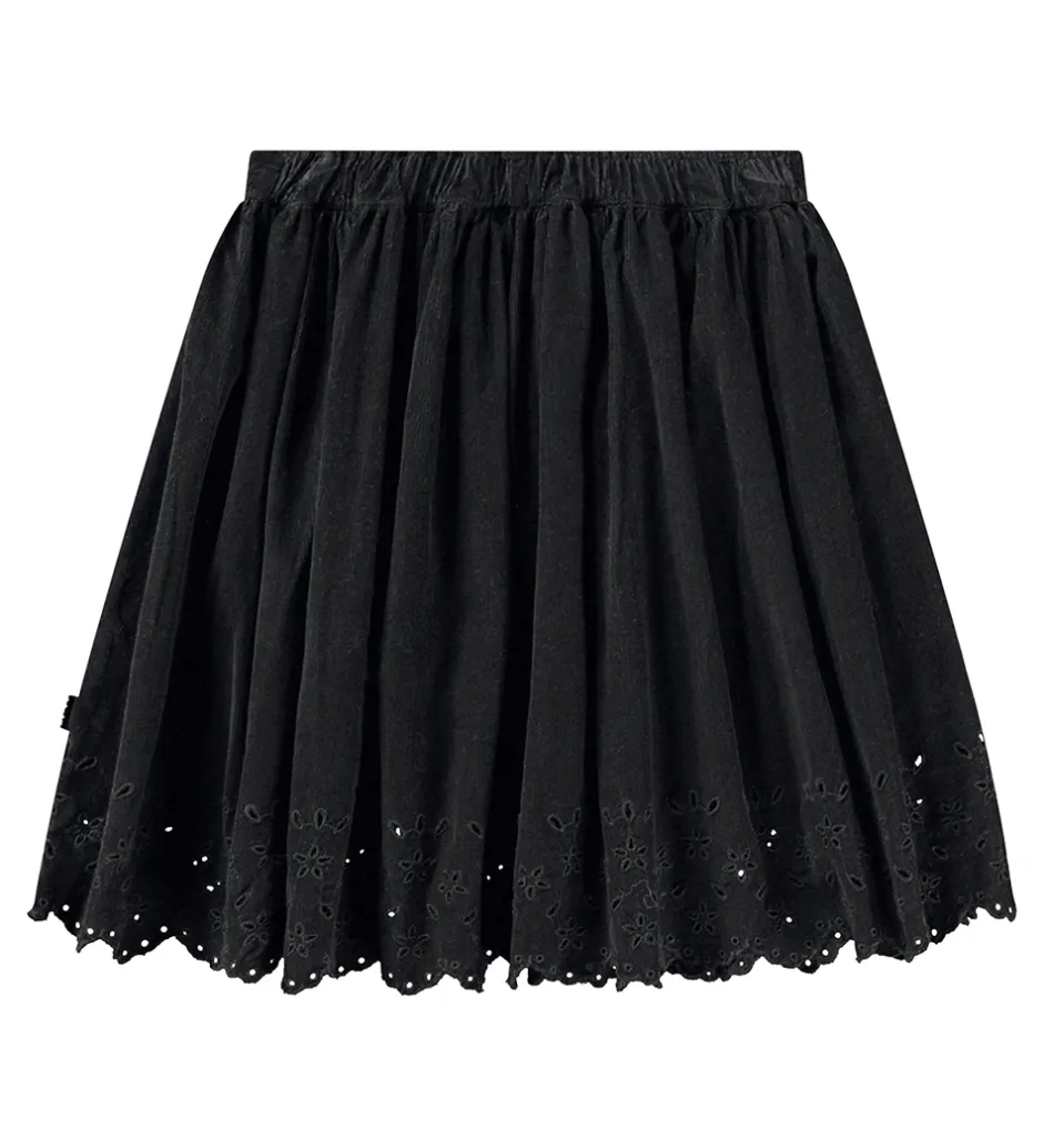 Sød Molo nederdel i sort fløjl med et flot hulmønster for neden.