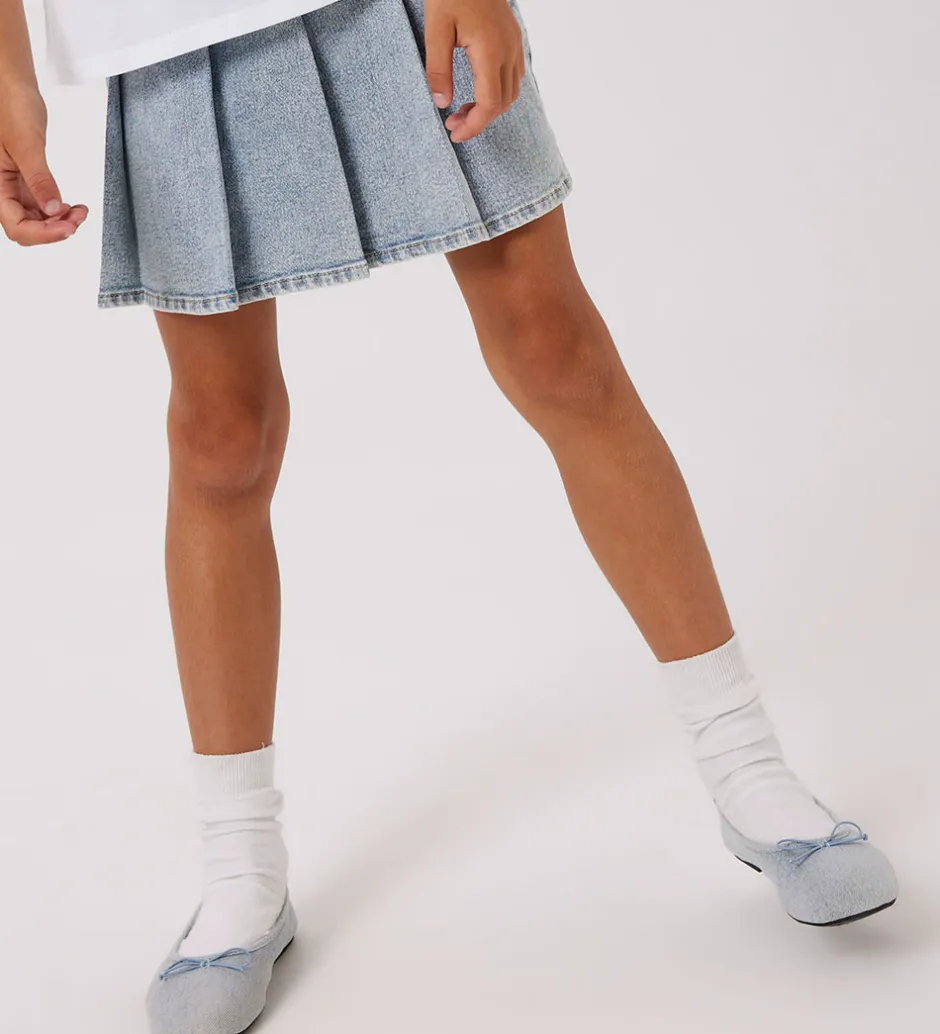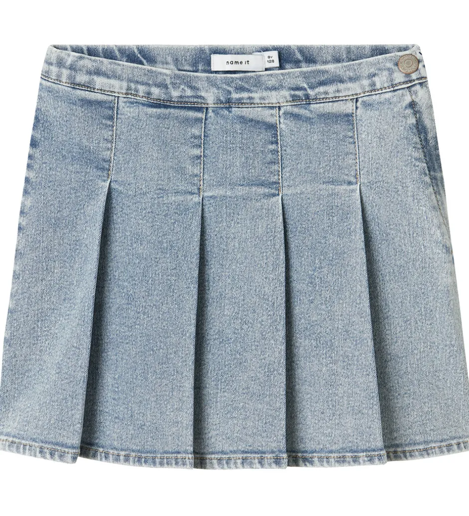 Lækker Name It nederdel i en lys blå denimfarve med fine folder, der giver et stilrent udtryk. Nederdelen fra Name It passer perfekt til enhver anledning og kan let styles med forskellige toppe.