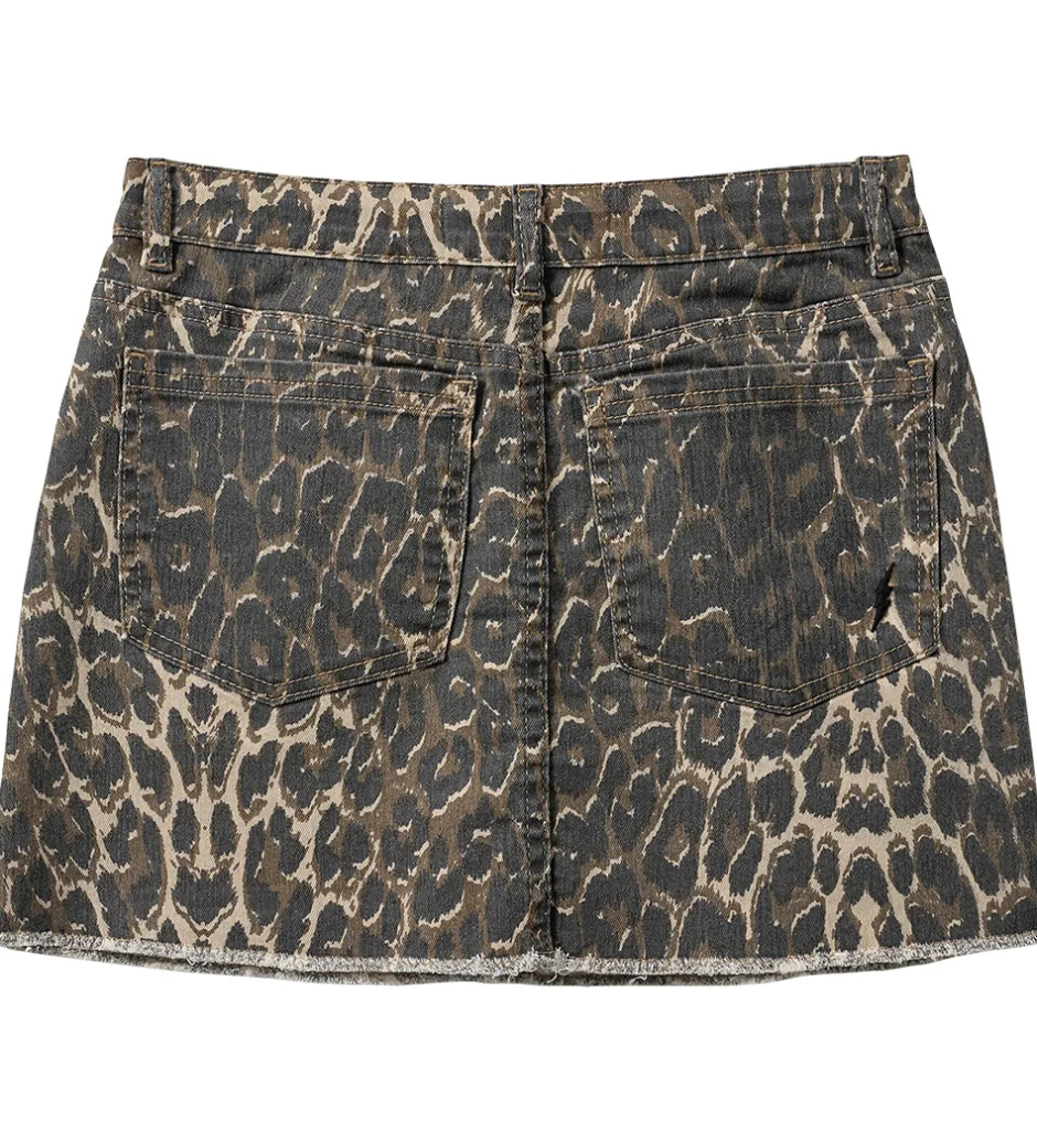 Lækker Sofie Schnoor nederdel med et flot leopardprint i nuancer af brun, sort og beige. Nederdelen har klassisk design med en rå kant forneden, som giver et stilrent look til garderoben.