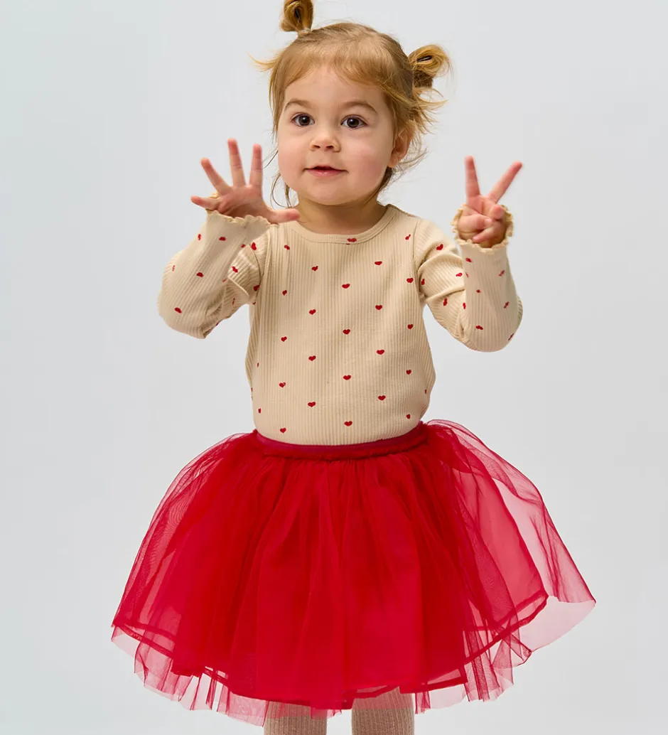 Flot The New Siblings tylnederdel i en dyb, rød farve. The New Siblings tylnederdelen er fremstillet med flere lag tyl for en fyldig struktur og har en elastisk talje, der sikrer en god pasform.