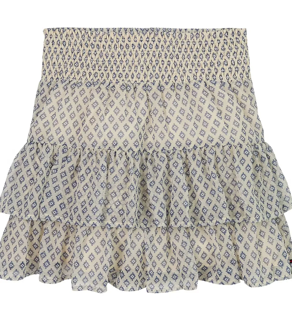 Flot Tommy Hilfiger nederdel i beige med et fint, blåt print. Nederdelen har flere lag og en elastisk smocktalje, som sikrer en god pasform.