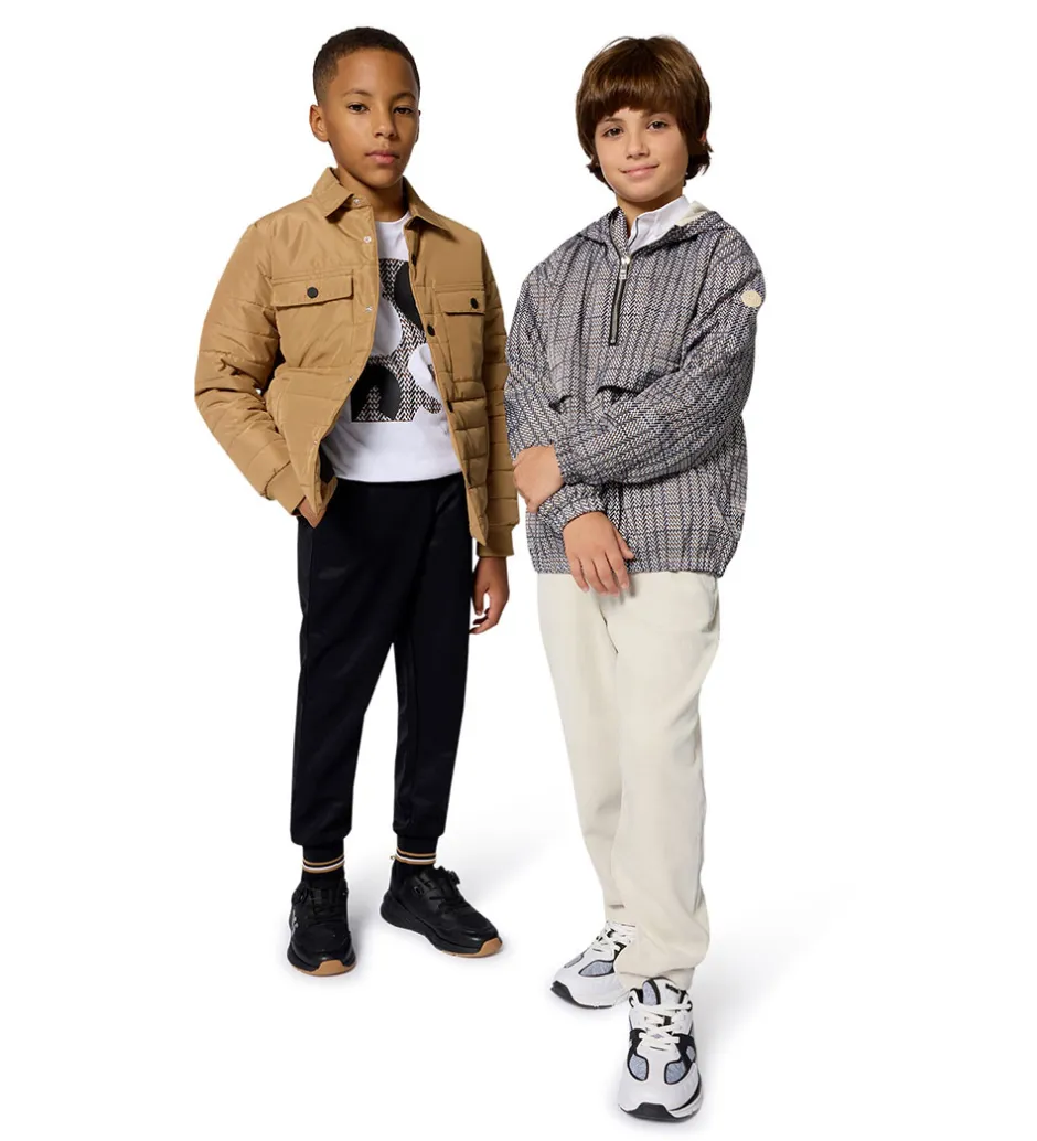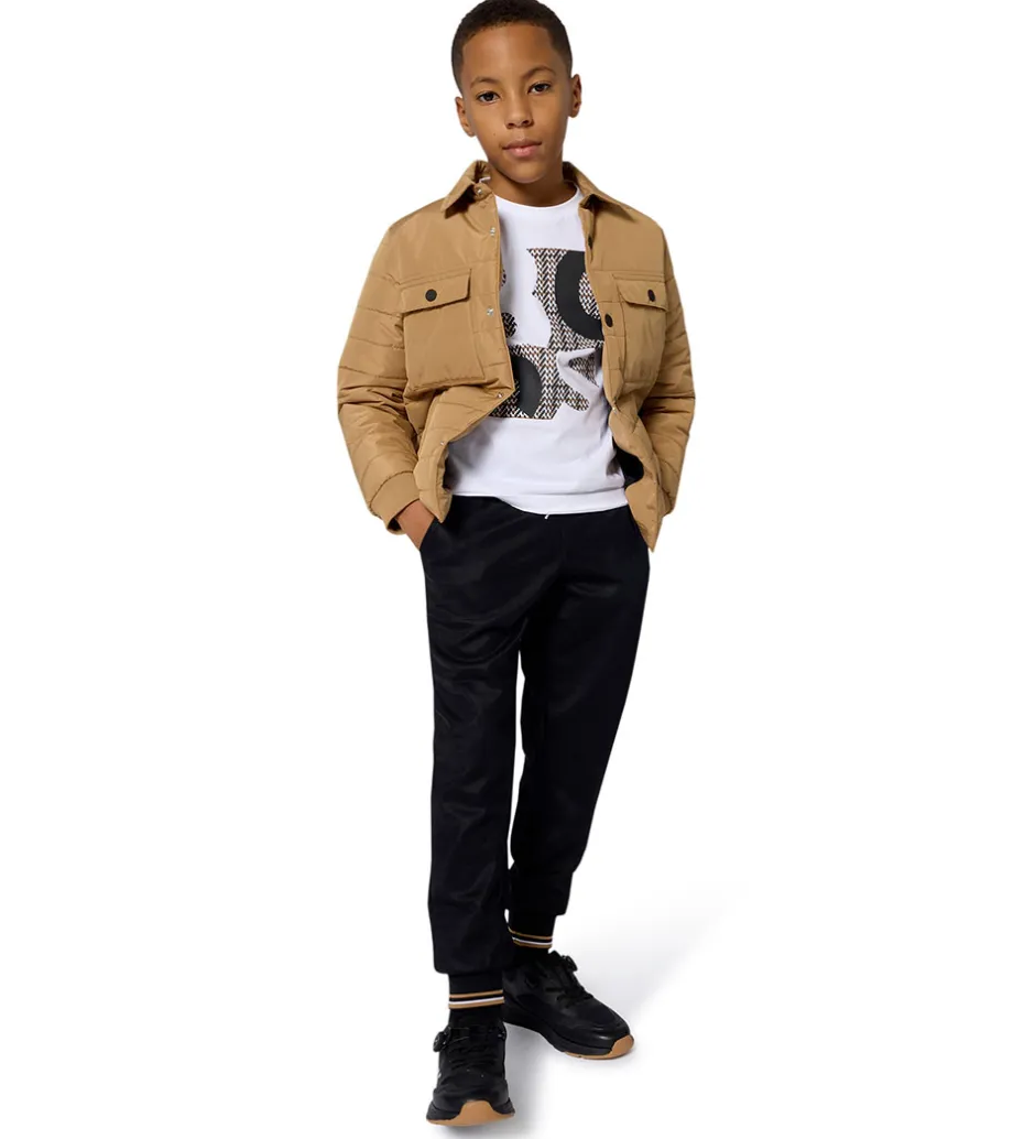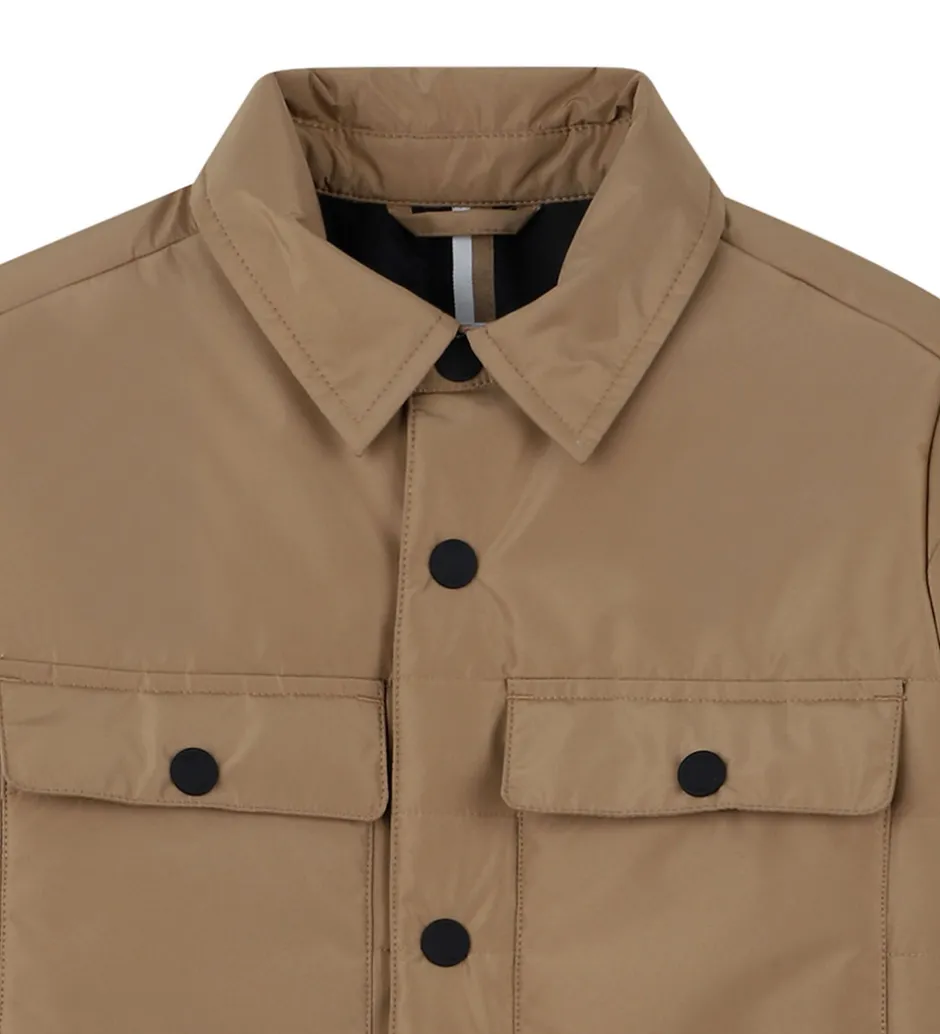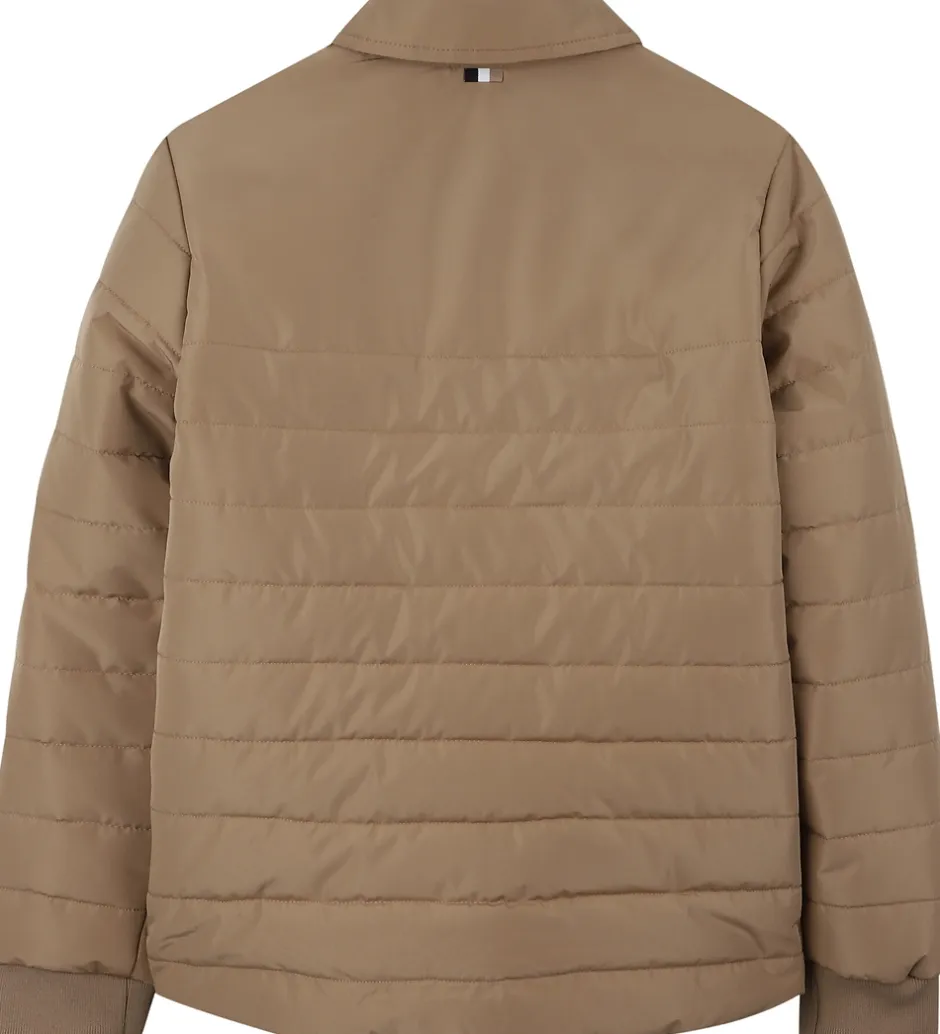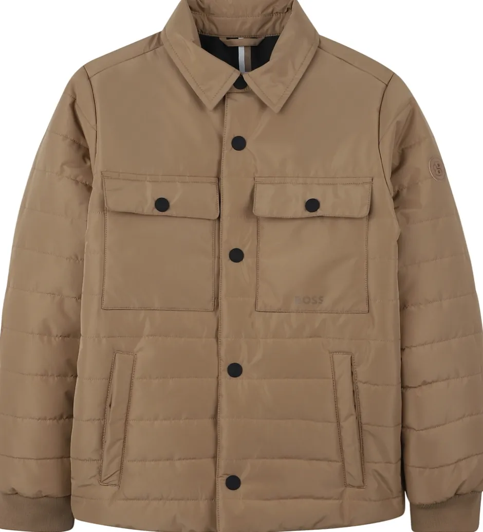 Elegant BOSS dynejakke i en klassisk beige nuance med stilfulde, sorte trykknapper. Dynejakken har en quiltet struktur i et tidløst design.