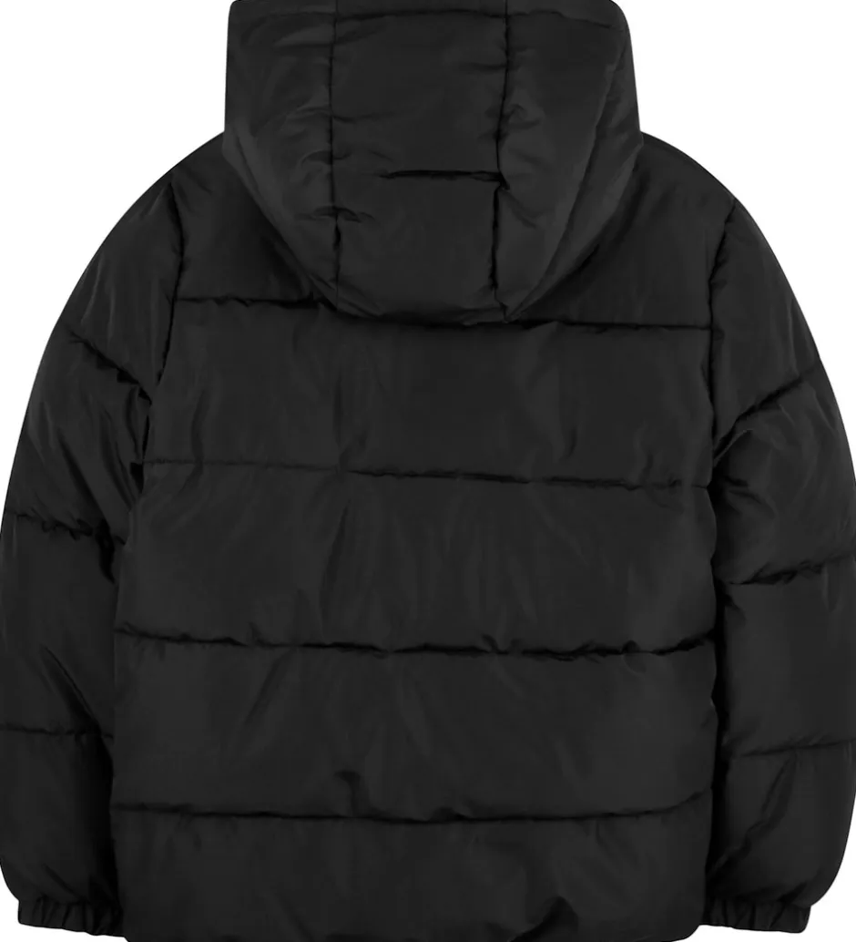 Lækker BOSS dynejakke i ensfarvet sort i en glatvævet kvalitet med vandrette syninger.