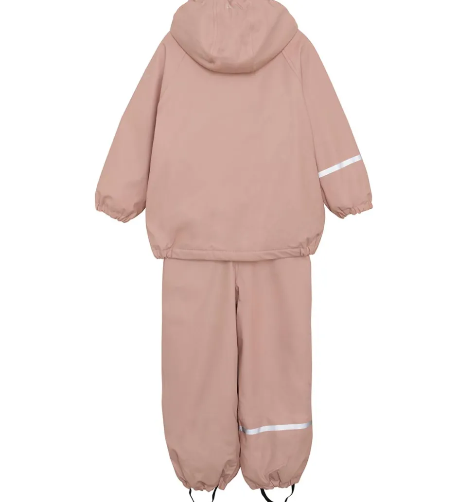 Smart CeLaVi regntøj, der består af en regnjakke og et par regnbukser i rosa.