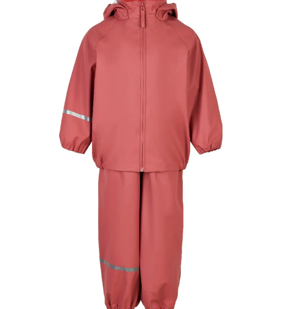 Flot CeLaVi regntøj i støvet rød PU med seler.