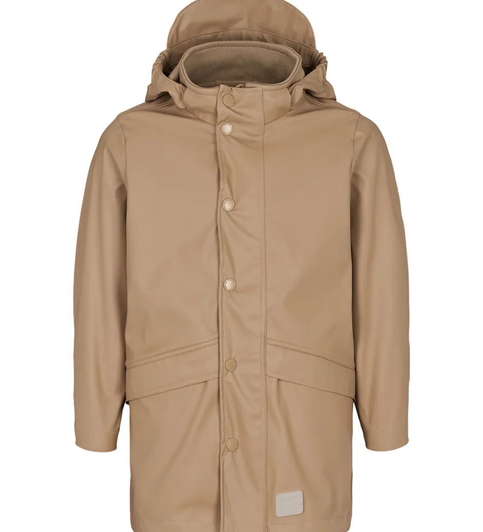Lækker MarMar regnfrakke i ensfarvet brunt PU.