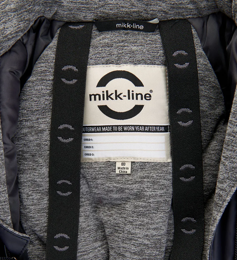 Mikk-Line flyverdragten har en aftagelig hætte, som sidder fast med trykknapper omkring halskraven. Hætten har elastikindsatser og en skygge i toppen af ansigtsåbningen. Ærmerne og benene har elastikkanter, og buksebenene har aftagelige, justerbare gummistropper til at sætte under fodtøjet. I ryggen er der en bred elastik, og på indersiden har flyverdragten praktiske, sorte elastikseler.