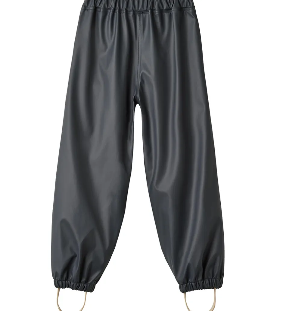 Wheat regnbukserne har elastiskkant i livet. Buksebenene har elastikkanter om anklerne, og der er aftagelige, justerbare gummistropper til at sætte under fodtøjet.