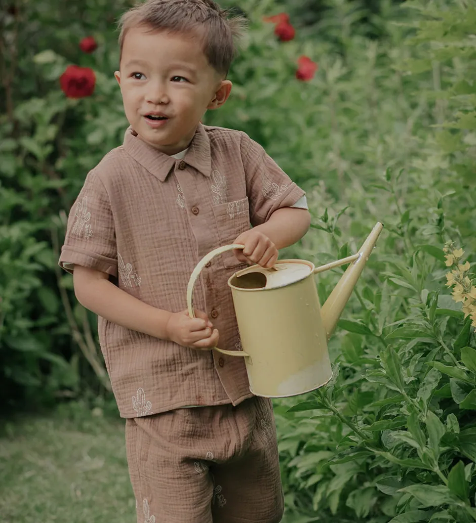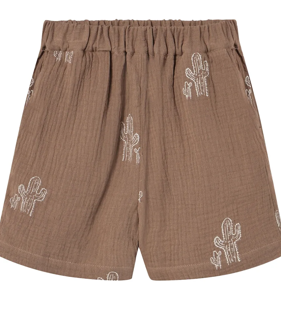 Stilfulde Fliink shorts i en lys brun nuance med et charmerende kaktusprint. Shortsene har en behagelig elastik i taljen, der sikrer en god pasform. Fliink designet giver en unik og sjov stil.