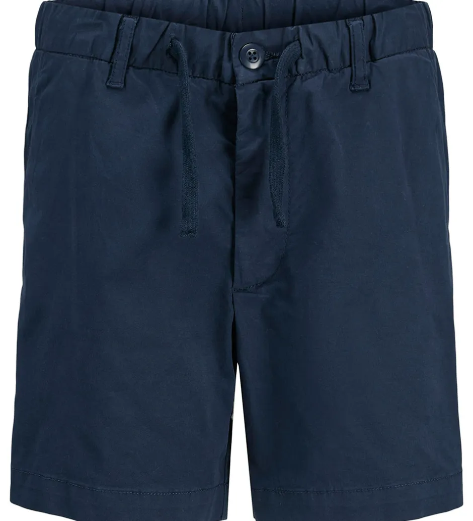 Komfortable Jack & Jones shorts i en dyb navy med praktisk snøre og knaplukning i taljen. Jack & Jones shortsene har lommer foran og en god pasform, der gør dem velegnede til mange anledninger.